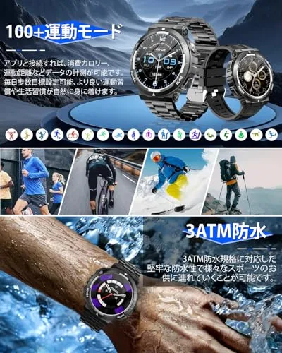 【1.53インチ大画面&軍用規格スマートウォッチ】 このスマートウォッチは高精細で美しい色を表現できる1.53インチタッチディスプレイを搭載し、視認性に優れた360*360高解像度大画面を採用され、画質がより鮮明になり、より高精度な大画面で文字を表示されます。例のない快適な視覚感と優れた操作感をもたらします。 更に、このスポーツウォッチは軍用級の材料を採用され、高温・低温・衝撃・防塵防水などの軍事規格認証をクリアして、あらゆる過酷な条件や試練にも耐えることができて、最も信頼できる仲間であります。※お風呂、サウナ、海水、温泉などのご利用はお控えください。