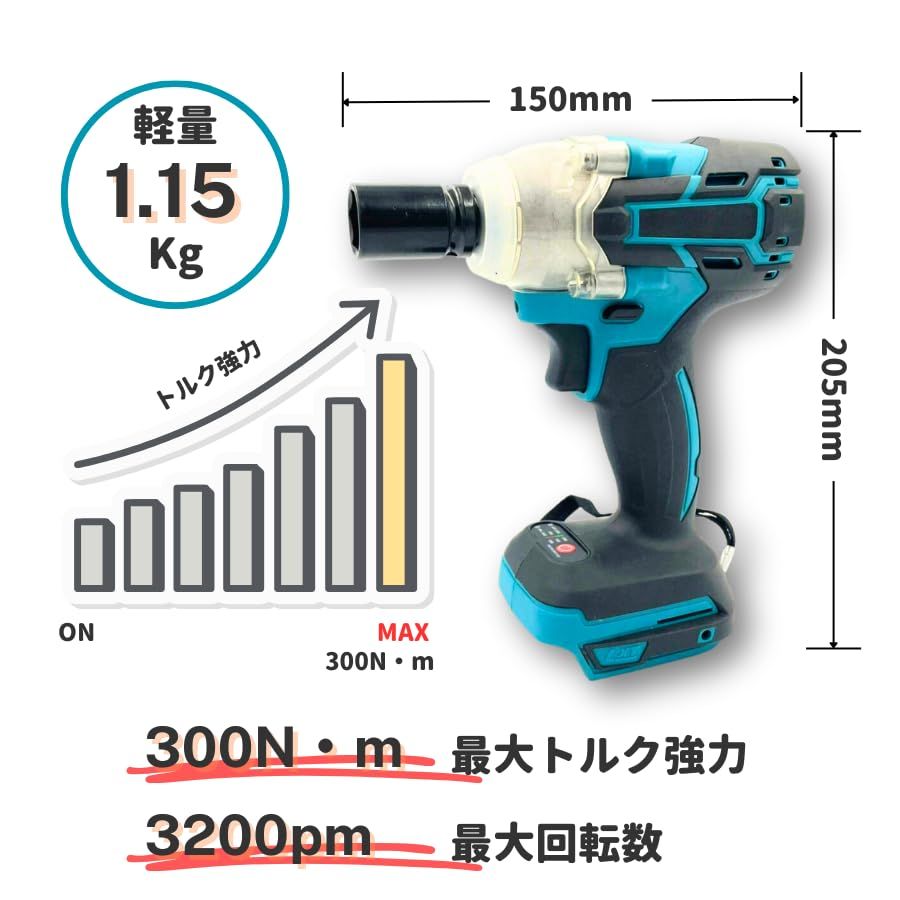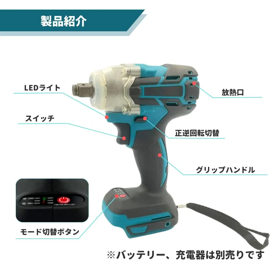 【送料無料】マキタ (Makita) インパクトレンチ 車 タイヤ交換 電動レンチ ボルト ナット 締め 18V バッテリー 使用可能 互換 充電式 電動工具 日本語説明書 バッテリー 別売り (本体単品(ブルー))