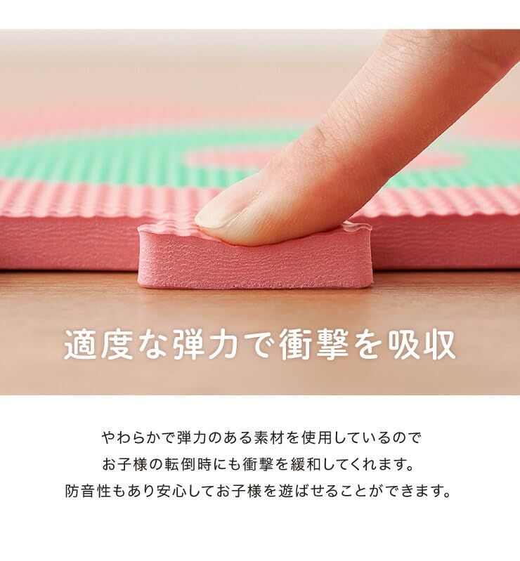 【適度な弾力で衝撃を吸収】やわらかで弾力のある素材を使用しているのでお子様の転倒時にも衝撃を緩和してくれます。 防音性もあり安心してお子様を遊ばせることができます。