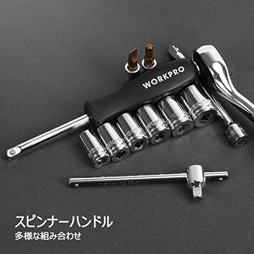 【送料無料】WORKPRO ソケットレンチセット ラチェットレンチ オフセットタイプ 差込角6.35mm(1/4インチ) 46点組 自動車修理 車メンテナンス ガレージツールセット 作業セット 工具 道具 専用収納ケース付属