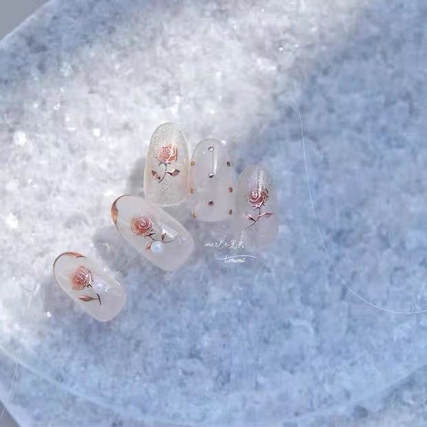 匿名配送⭐︎ネイルシール 立体 3D バラ ローズ ピンクゴールド チーク MS621