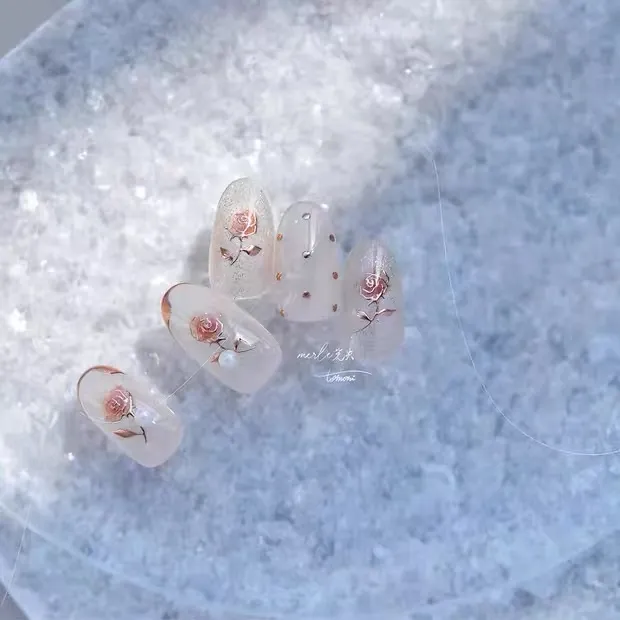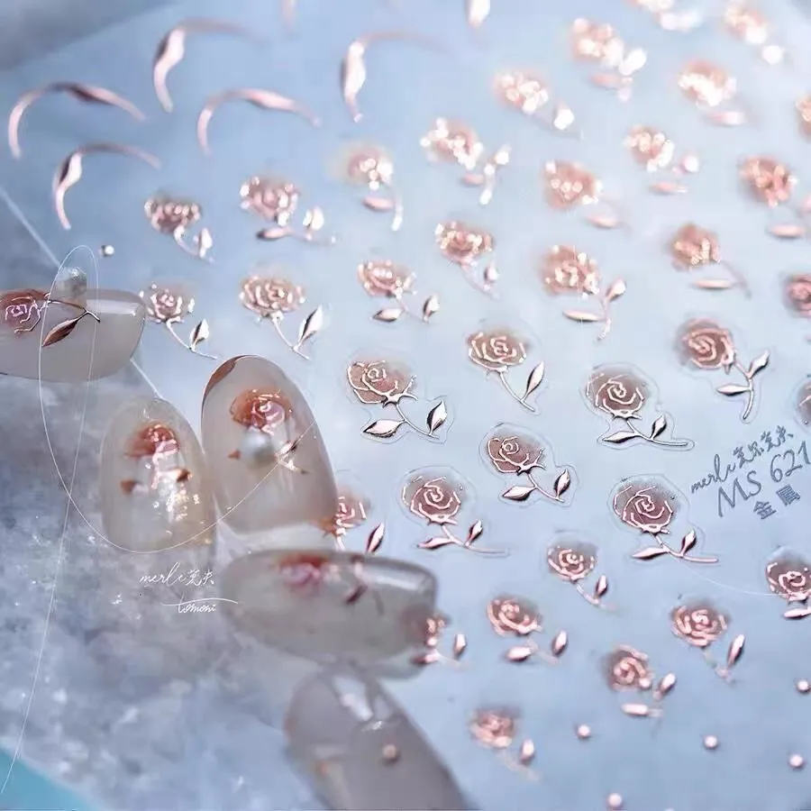 ネイルシール 立体 3D バラ ローズ ピンクゴールド チーク MS621