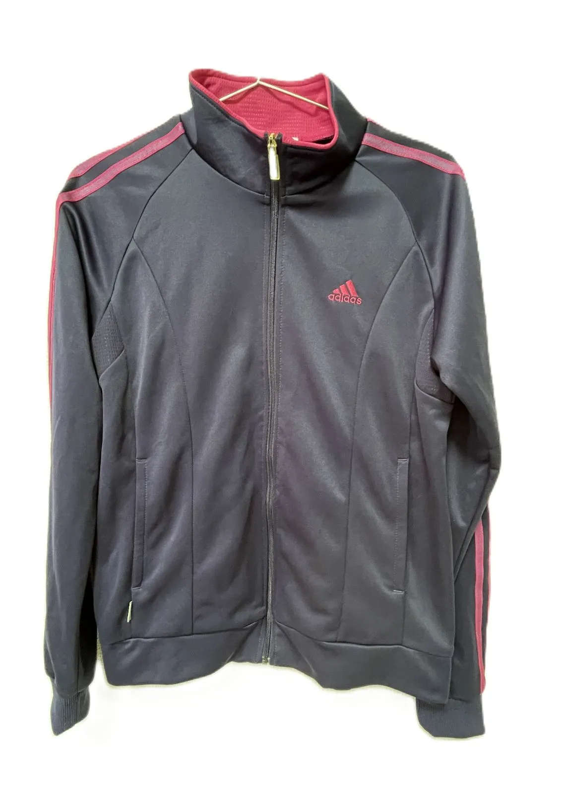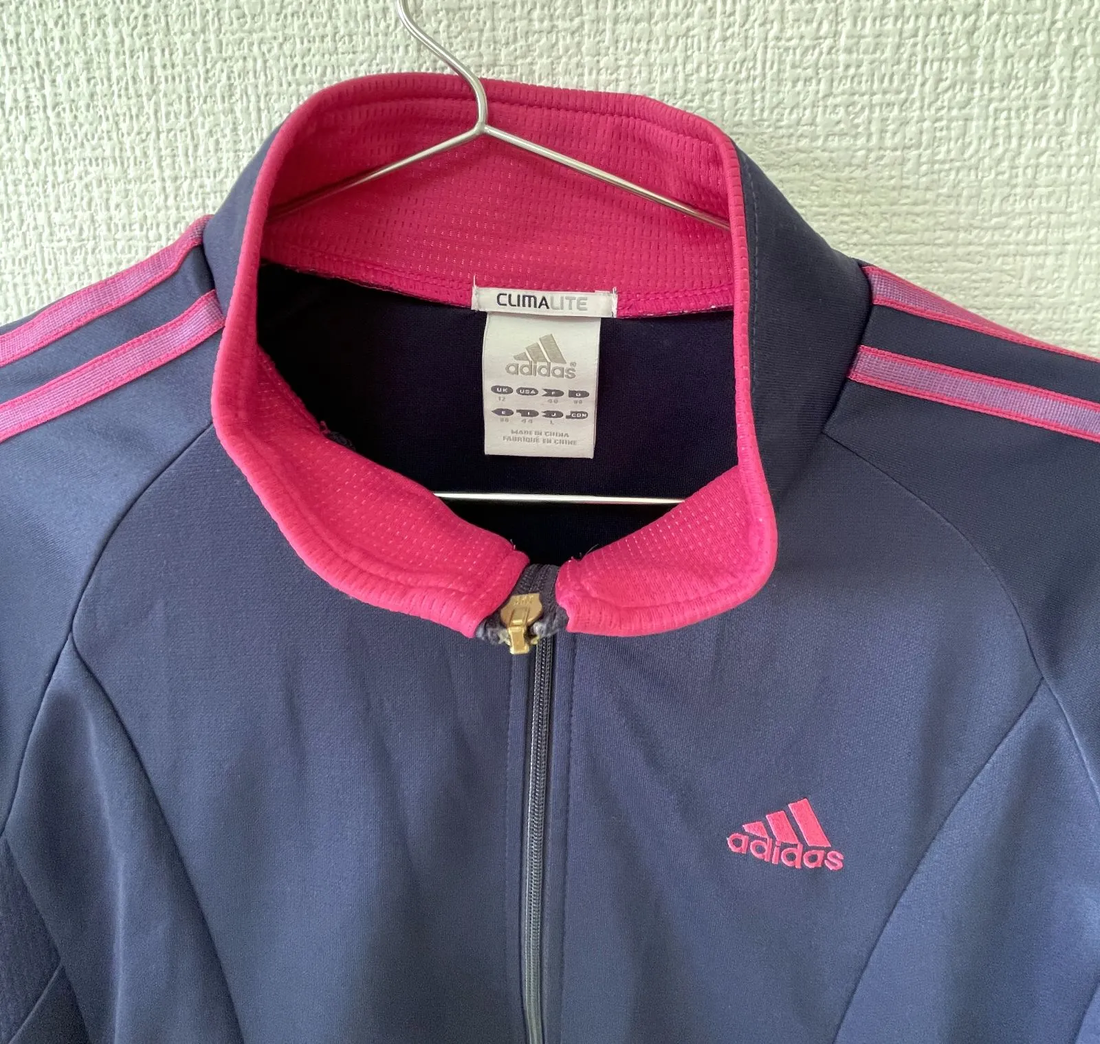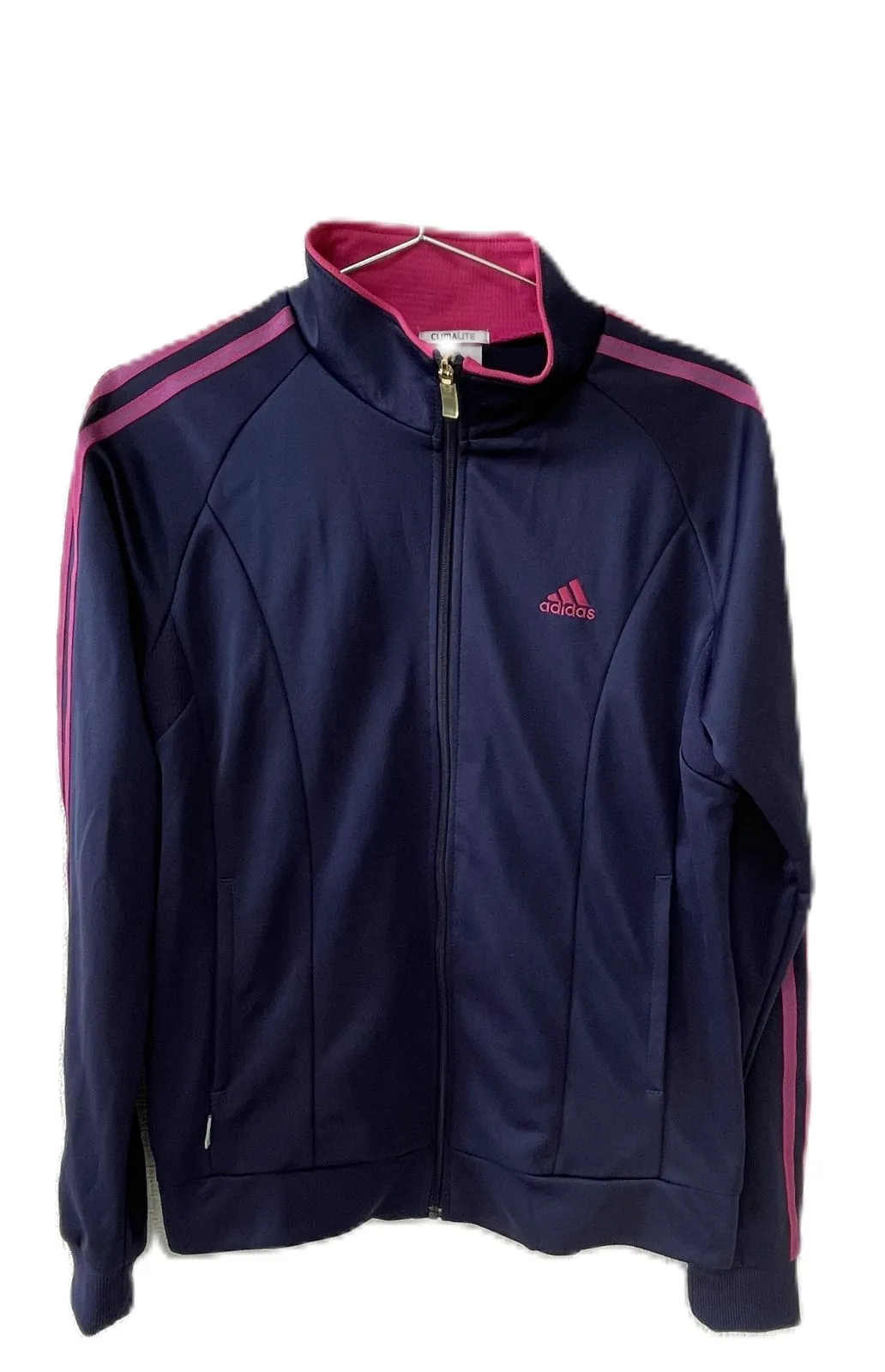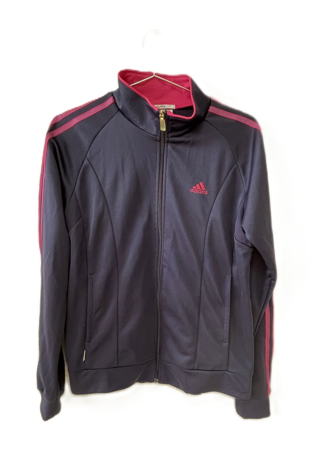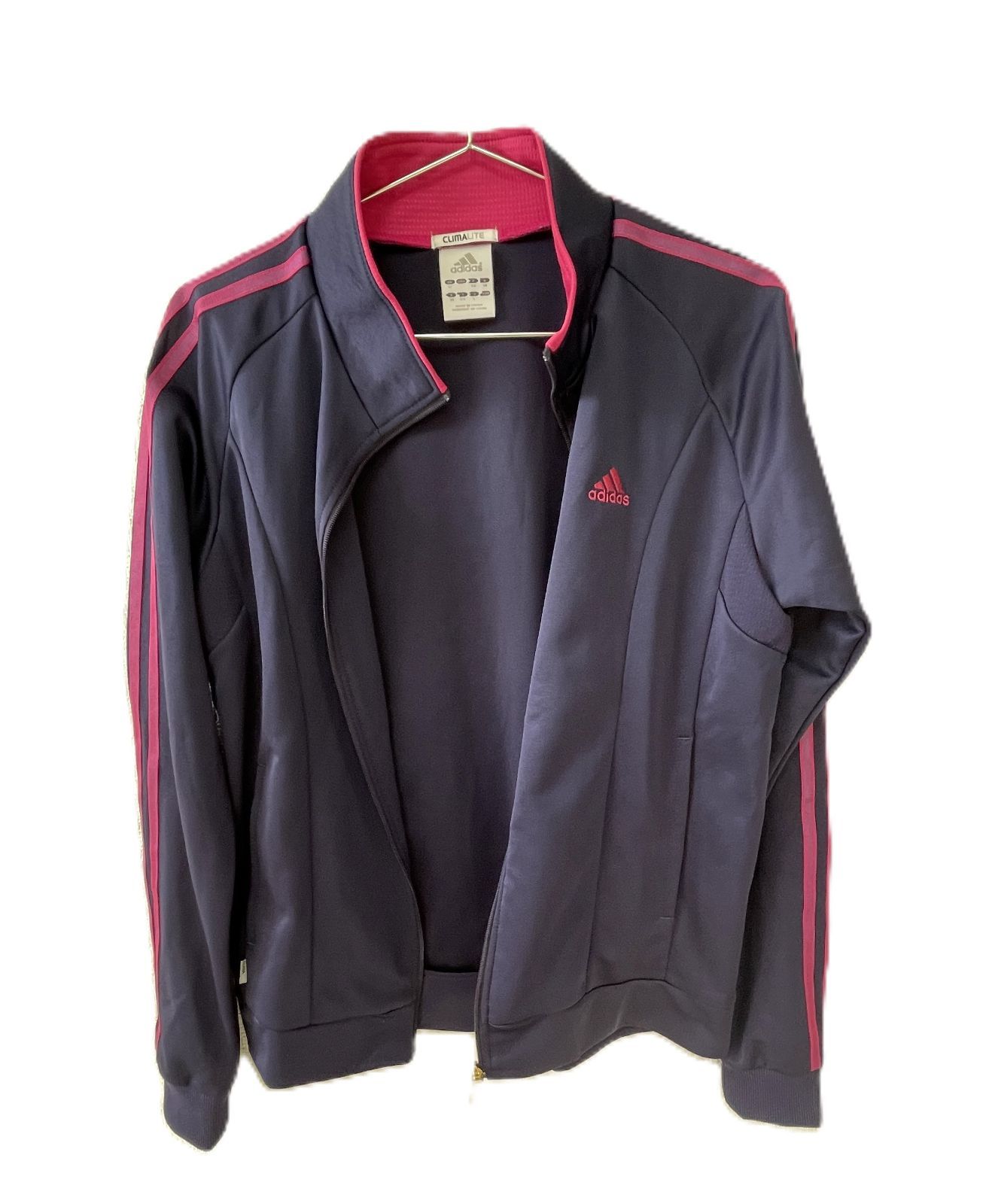 adidas CLIMALITE トラックジャケット レディース L ネイビー×ピンク ジャージ ジップアップ アディダス