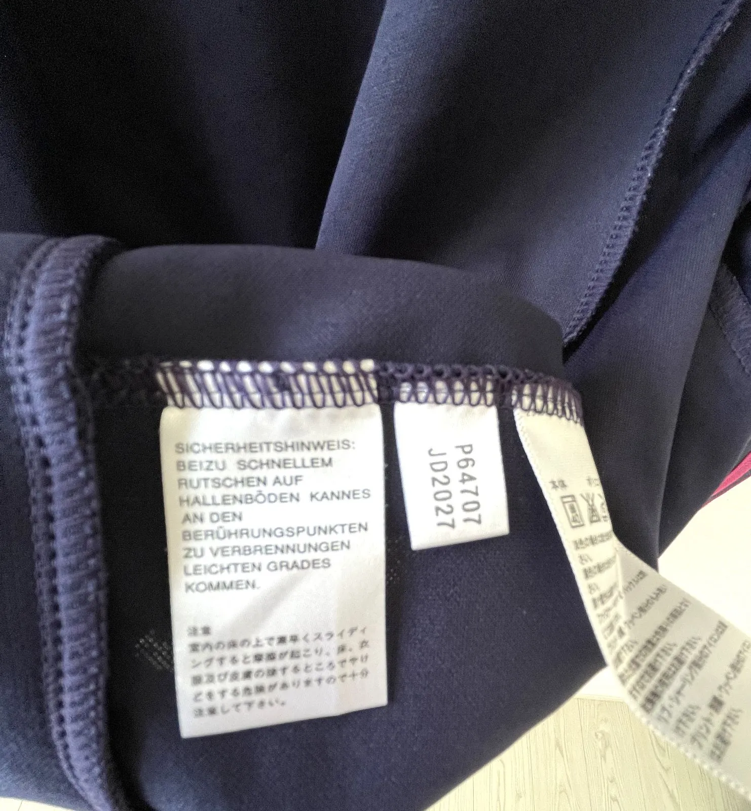 ネイビーベースにピンクのラインとロゴが映えるデザインで、