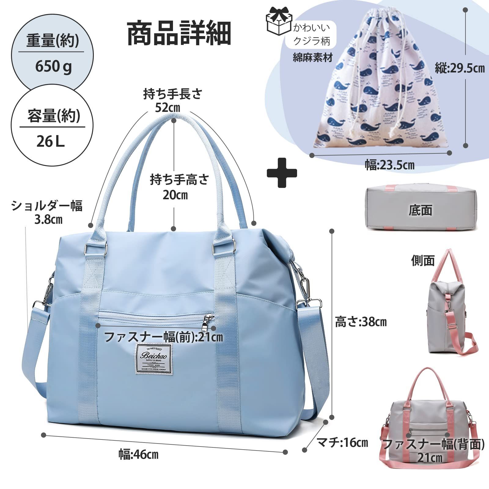 ボストンバッグ 旅行バッグ 幅46 大容量 軽量 キャリーオンバッグ トラベルバッグ 旅行カバン レディース メンズ 肩掛け ショルダー 3way 修学旅行 出張 出産 入院 おしゃれ 1泊 2泊 JS23AA004 (ブルー)