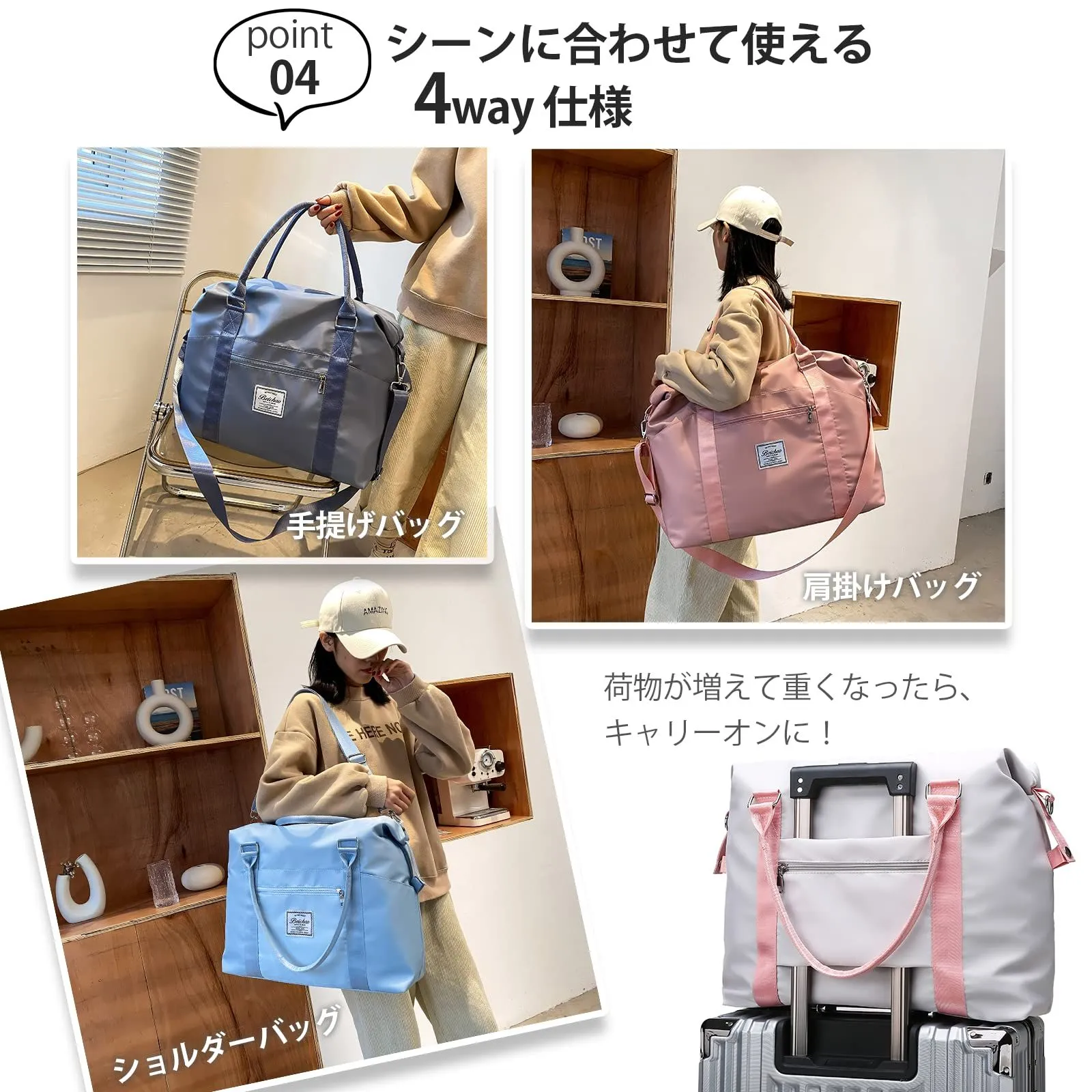 【シーンに合わせて使える4way仕様】ショルダーバッグ、手提げバッグ、肩掛けバッグ、キャリーオン 6色展開/ブラック、ピンク、グレー、ブルー、スカイブルー、ライトパープル ※