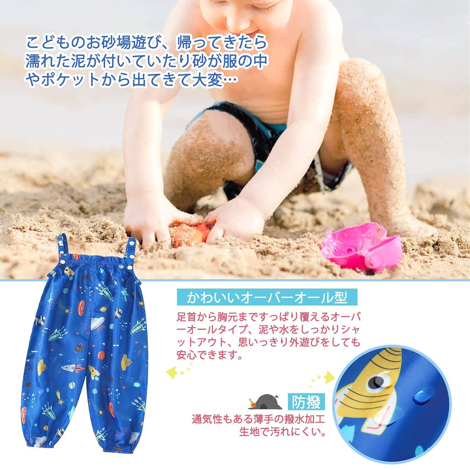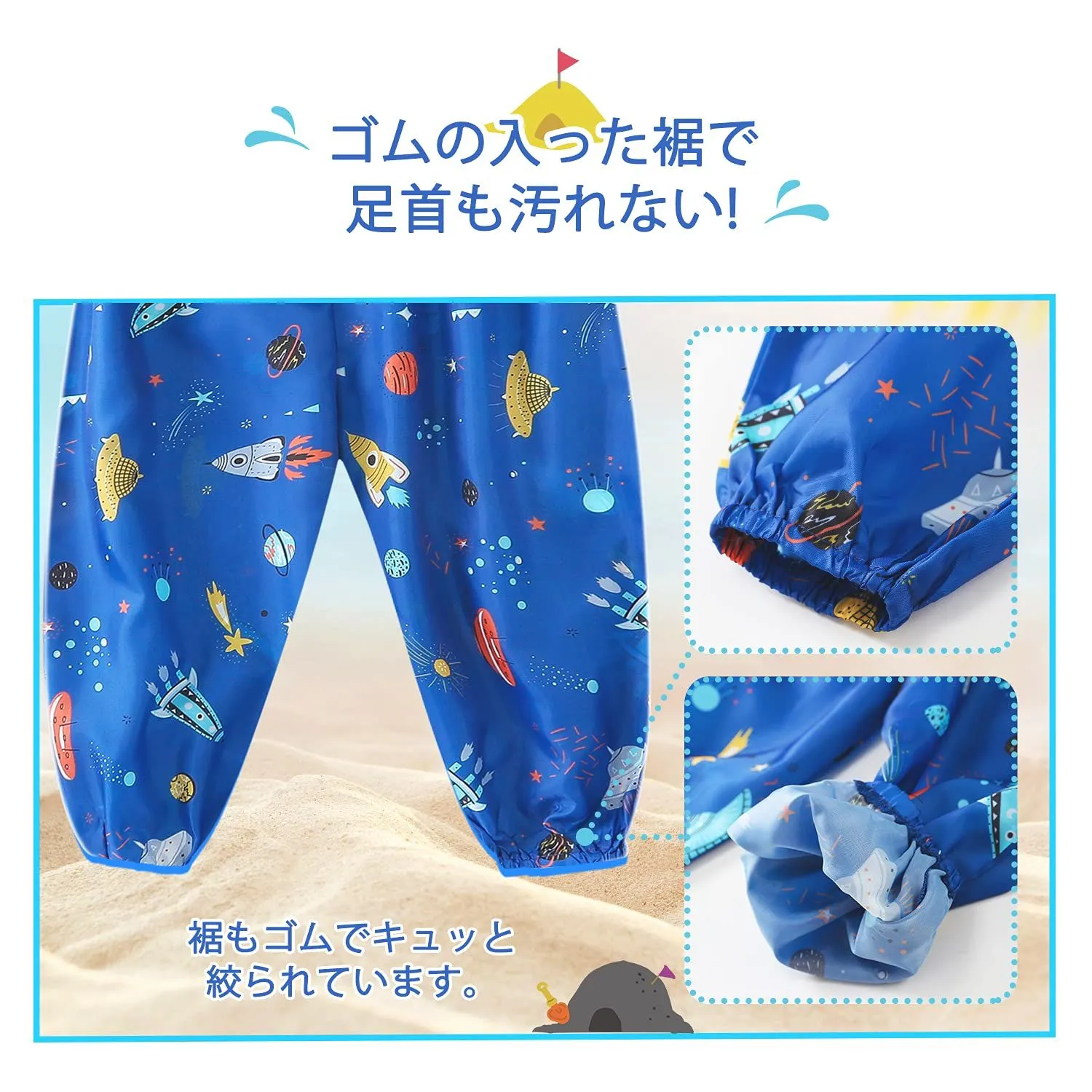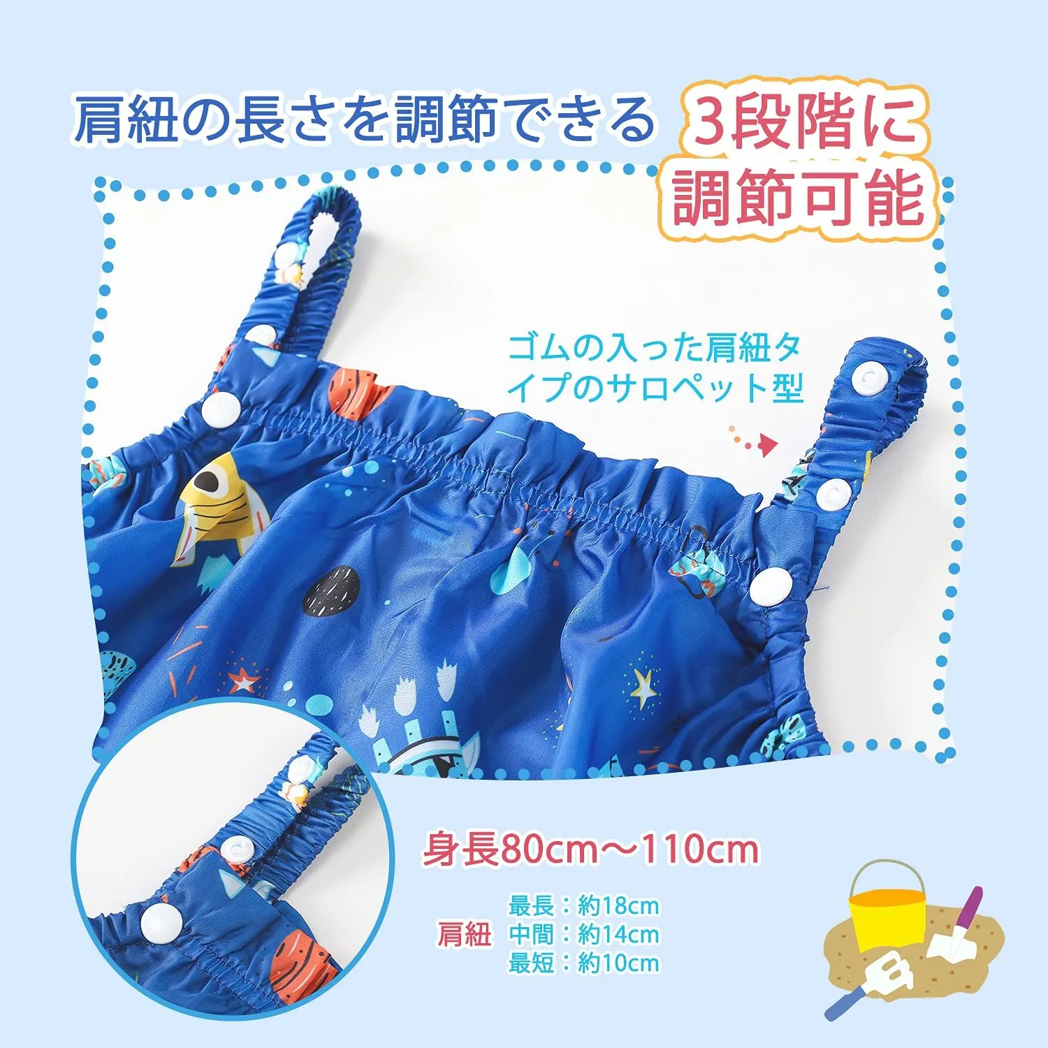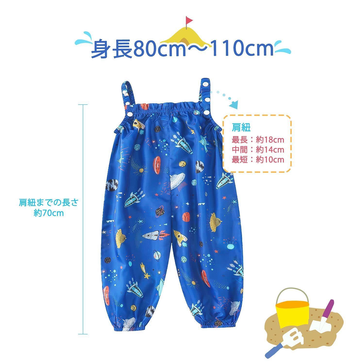 [Litchii Guusii] プレイウェア お砂場着 調節可能 遊び着 80cm - 110cm対応 宇宙柄 オーバーオール 子ども用 砂遊びパンツ かわいい レインパンツ 水遊び 撥水 防水 公園 幼稚園 保育園 ギフト (ブルー, 80cm - 110cm)