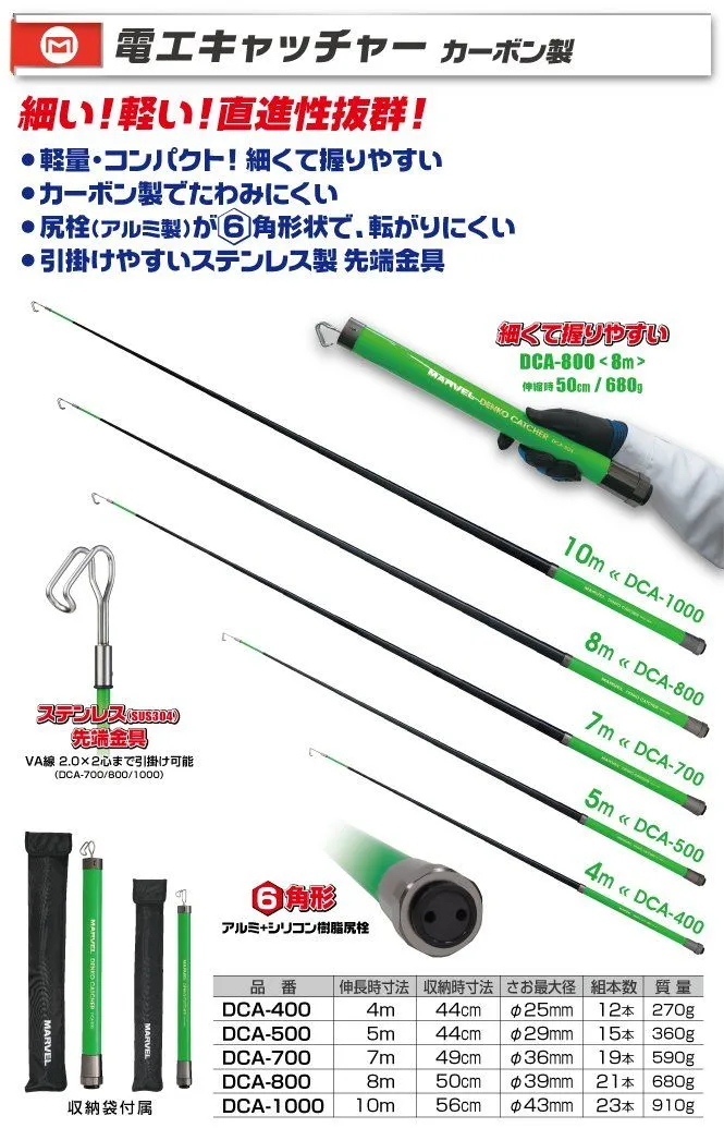マーベル MARVEL 電工キャッチャー 8mDCA-800 伸長時寸法:8m 収納時寸法:50cm 電工 電設 電通 電装 電気 工事 電線 通線 入線 工具