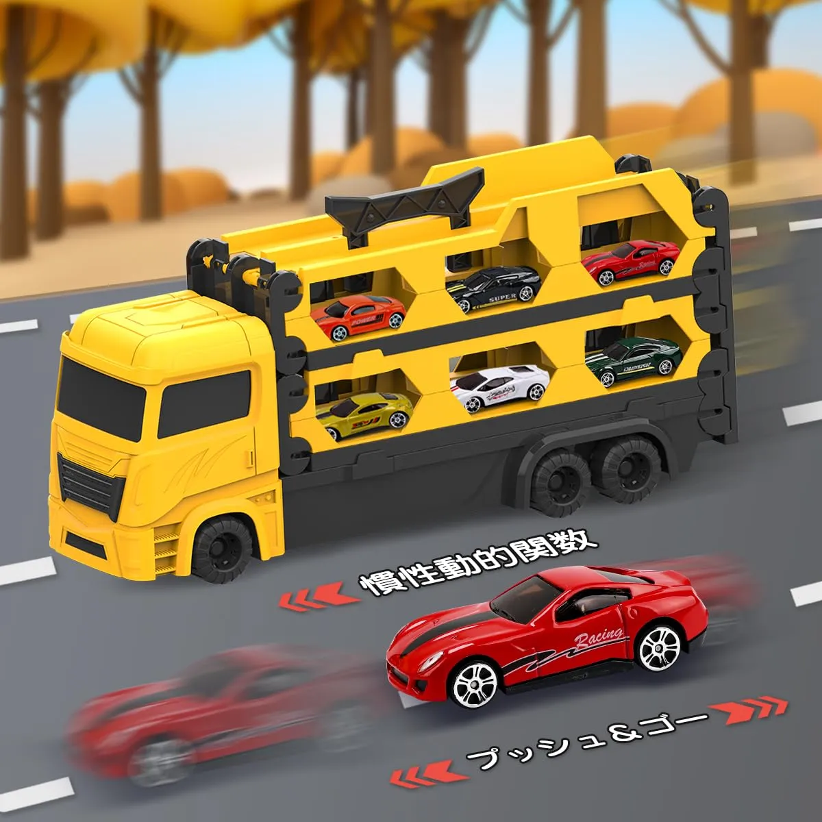 【軽くて頑丈】6台ミニカーセットのみ合金だからで、軽量ですが、意外と細かいところまで作ってあるので、少々乱暴な遊び方をしても持ちこたえています。安全で面白さが持っ人間の健康に無害するので、ご安心ください。ミニカーの載るトラックは折り畳み式になっており、車を走らせることも出来ます。対応年齢は3-15歳。