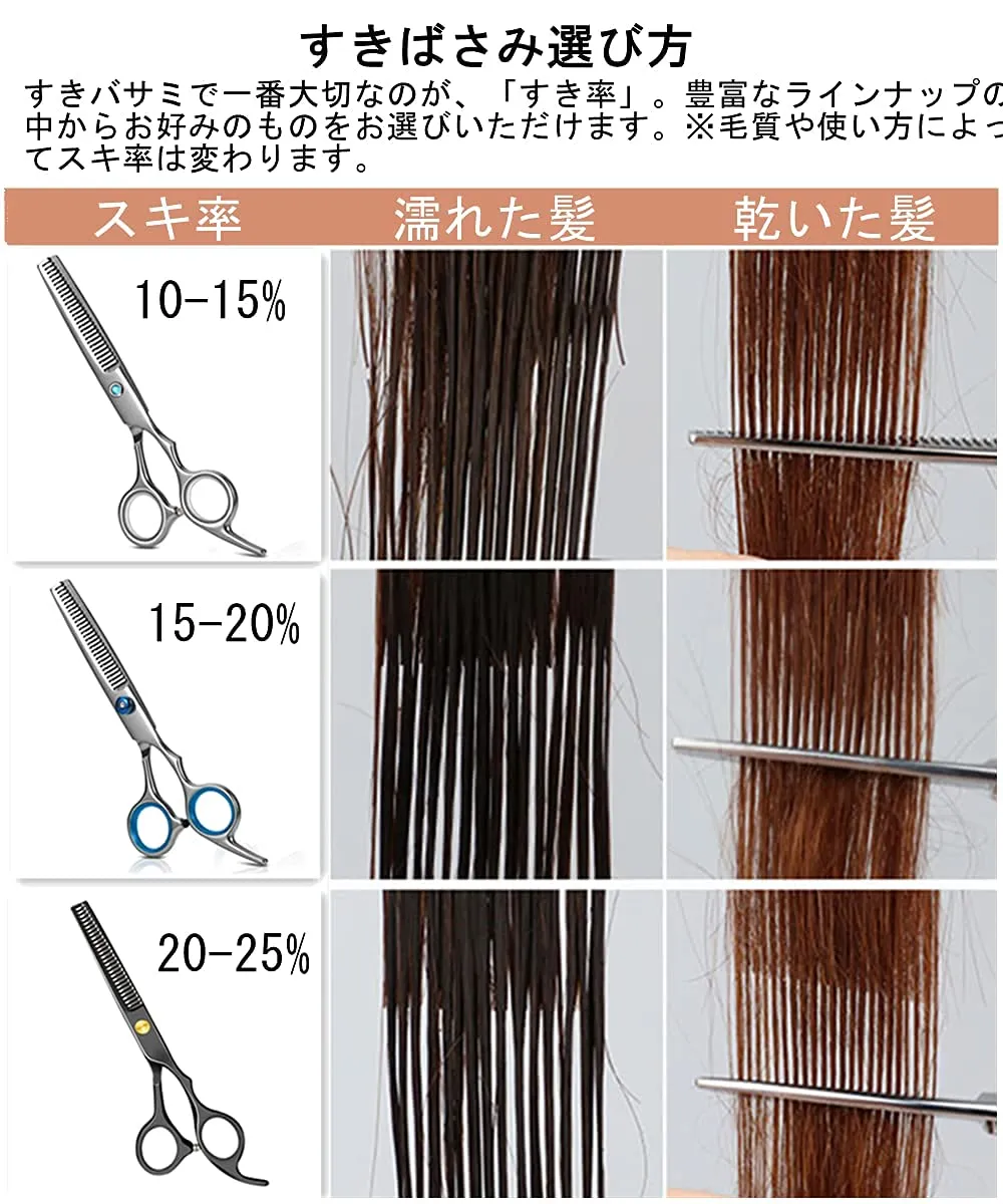 【自然な効果】すきばさみの歯が鋭くて、髪を引っかかりにくいです。自宅でも手軽に自分の前髪カットや子供の髪の毛を切ることなどができ、とても便利です。