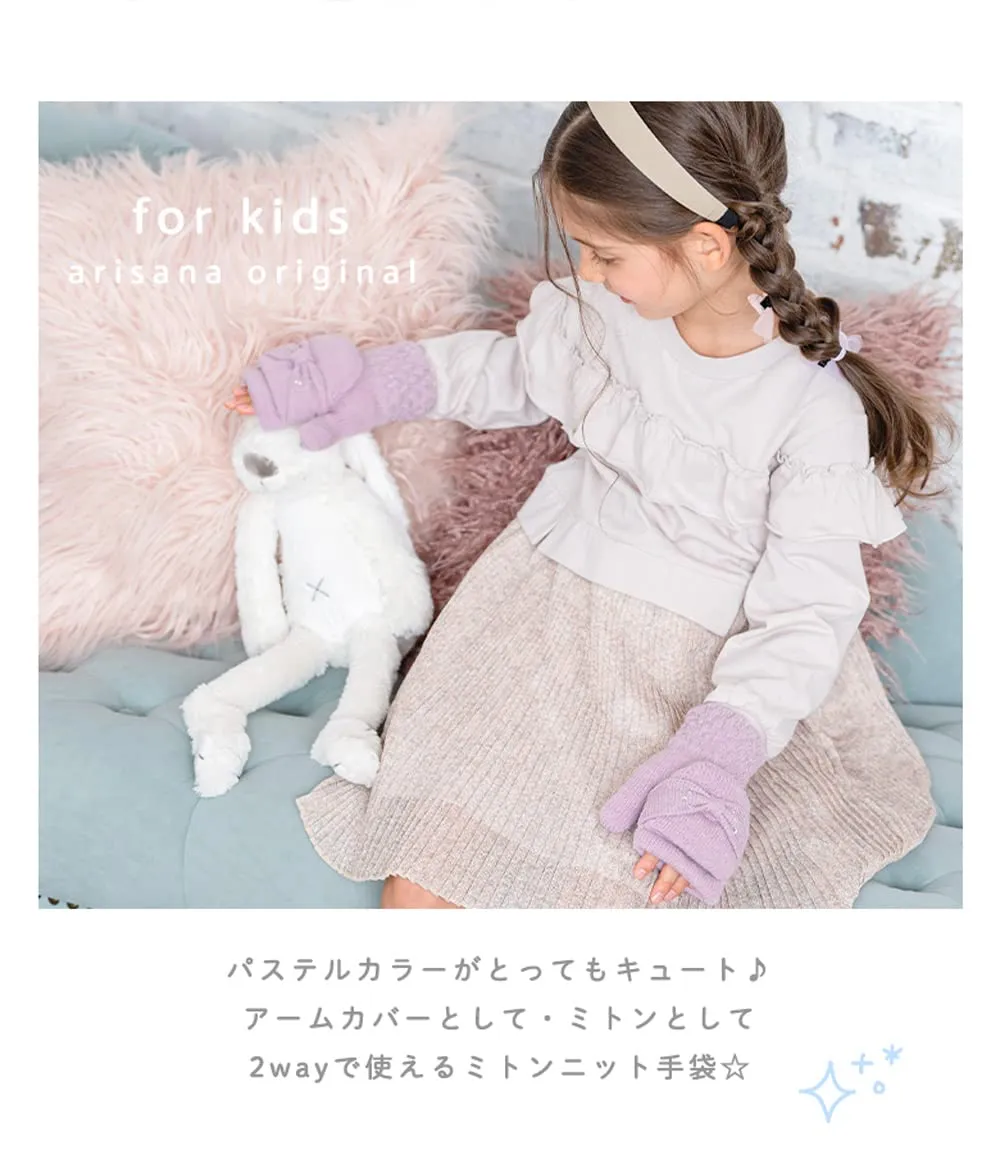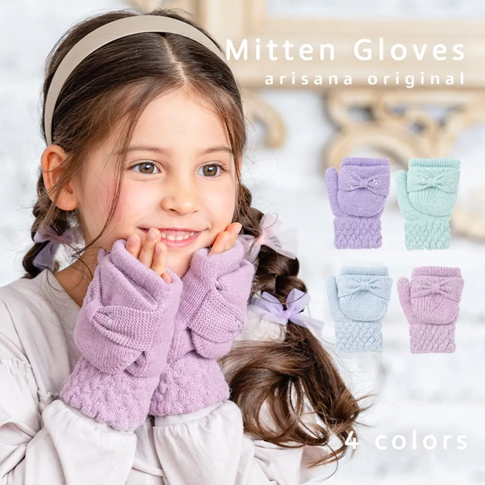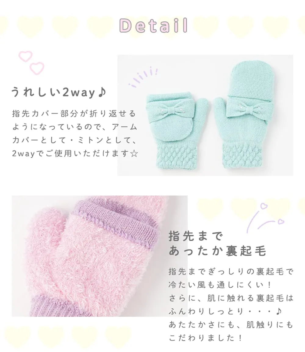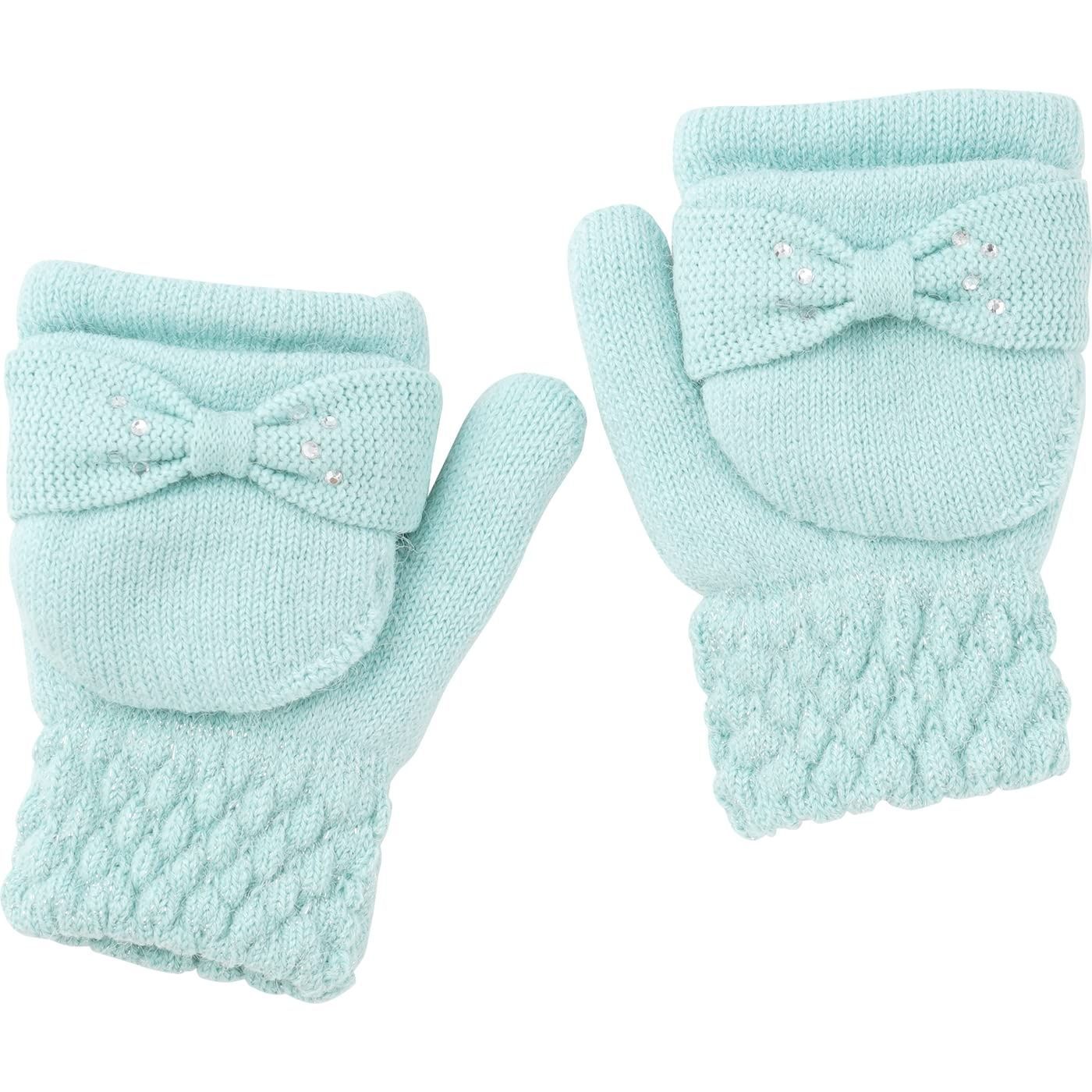 [アリサナ] キッズ 手袋 ミトン 女の子 子供 リボン グローブ 手ぶくろ 子ども 防寒 裏起毛 ミント 6-12歳
