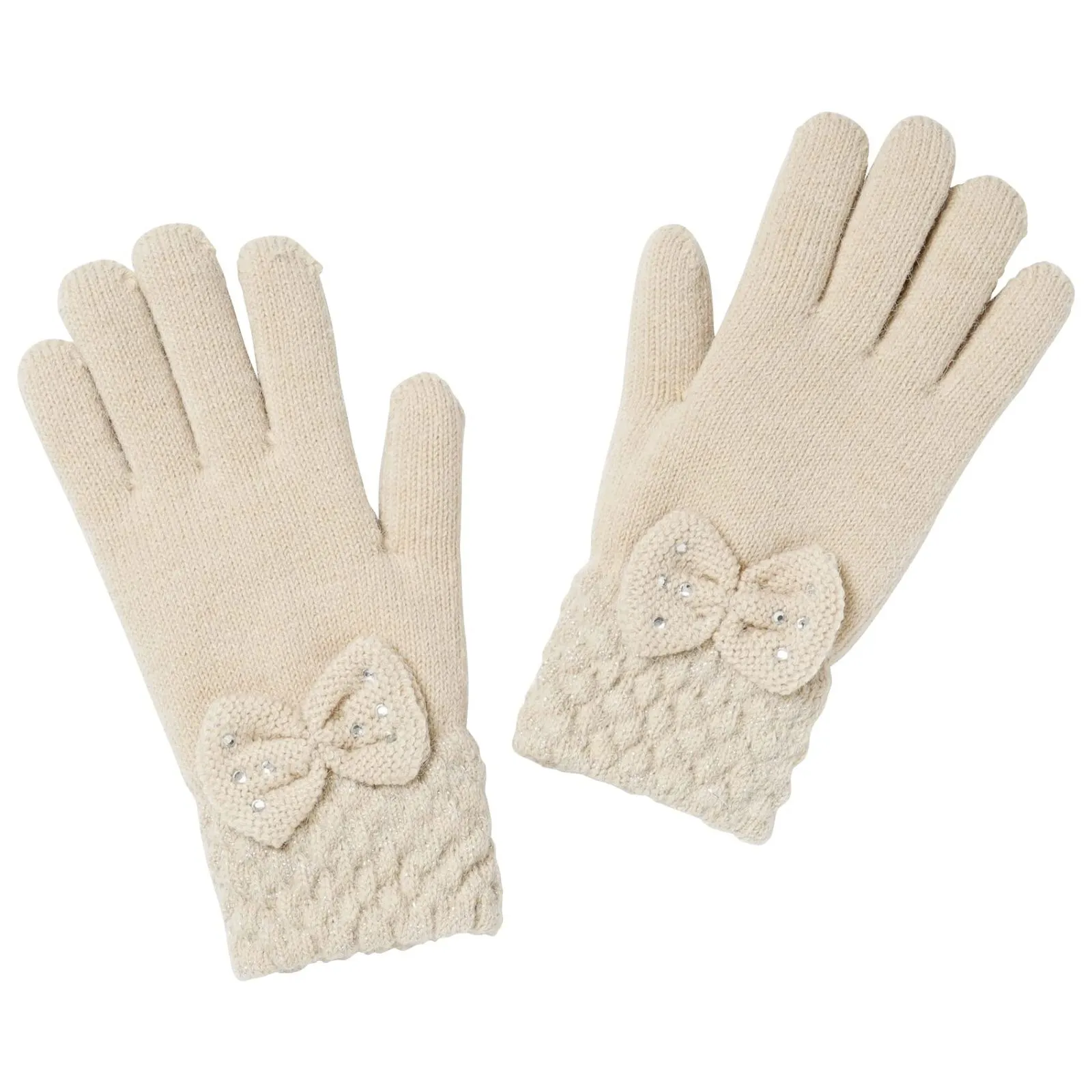 [アリサナ] 手袋 キッズ ニット グローブ 女の子 ジュニア 裏起毛 リボン ジュニアサイズ ラテベージュ