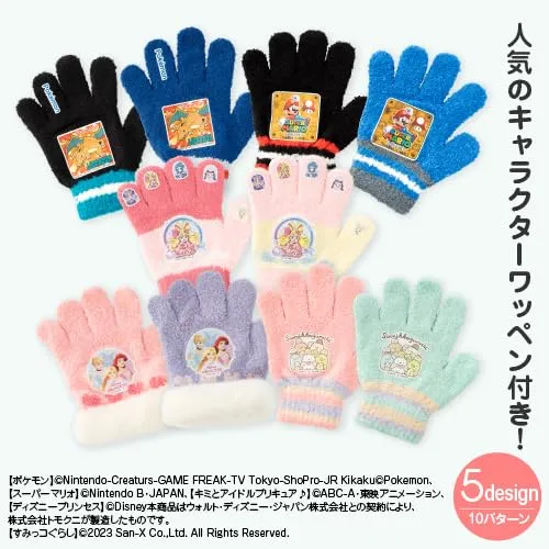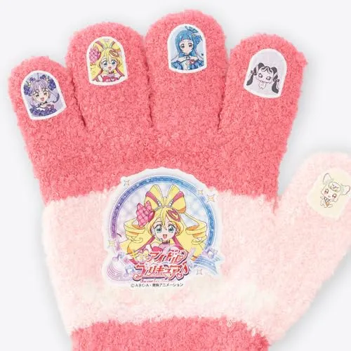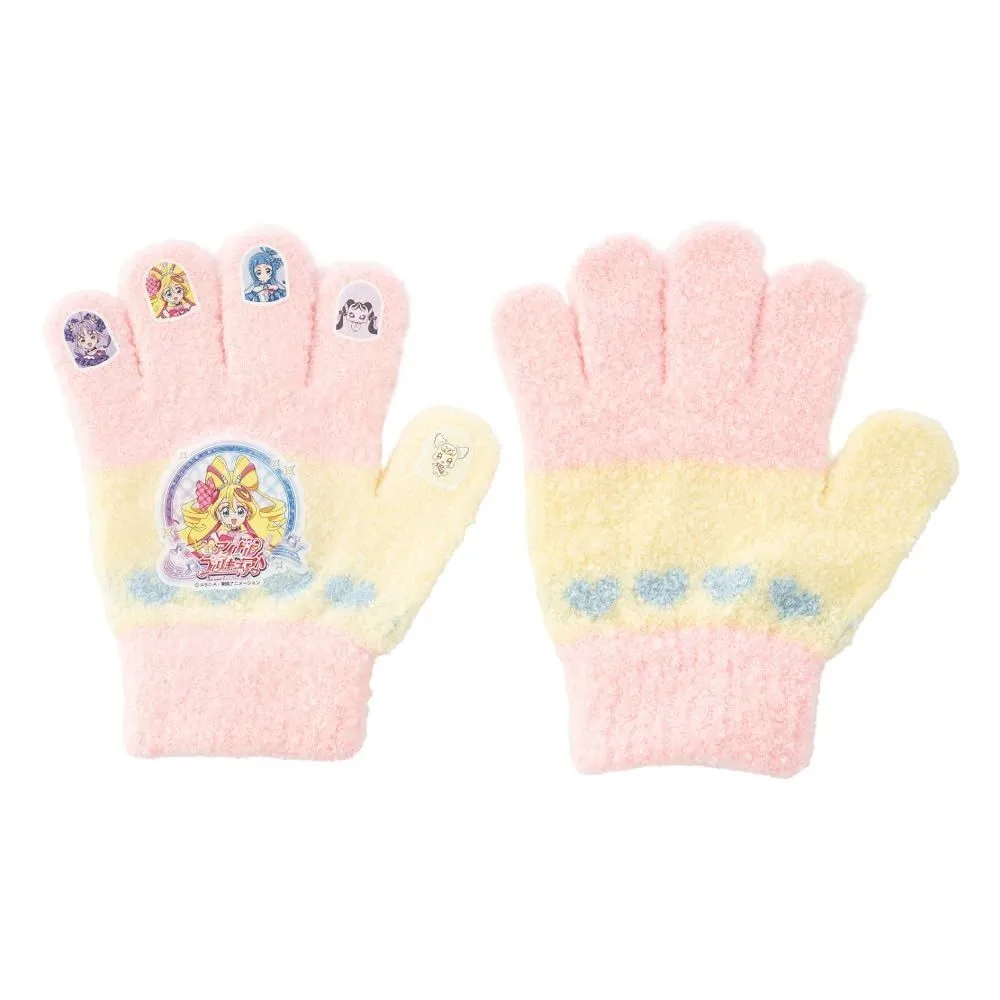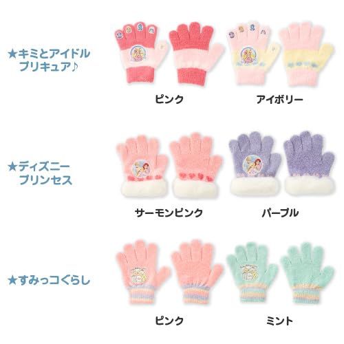 [GlovesDEPO] キッズ キャラクター手袋 ニット 5本指タイプ (ポケットモンスター/スーパーマリオ/プリキュア/ディズニーPrincess/すみっコぐらし) (プリキュア, アイボリー)