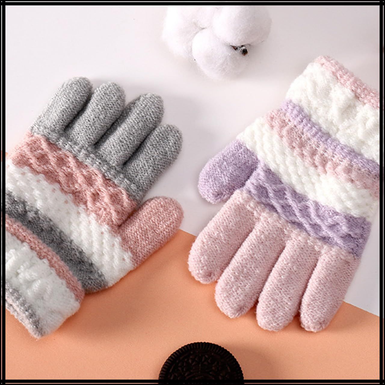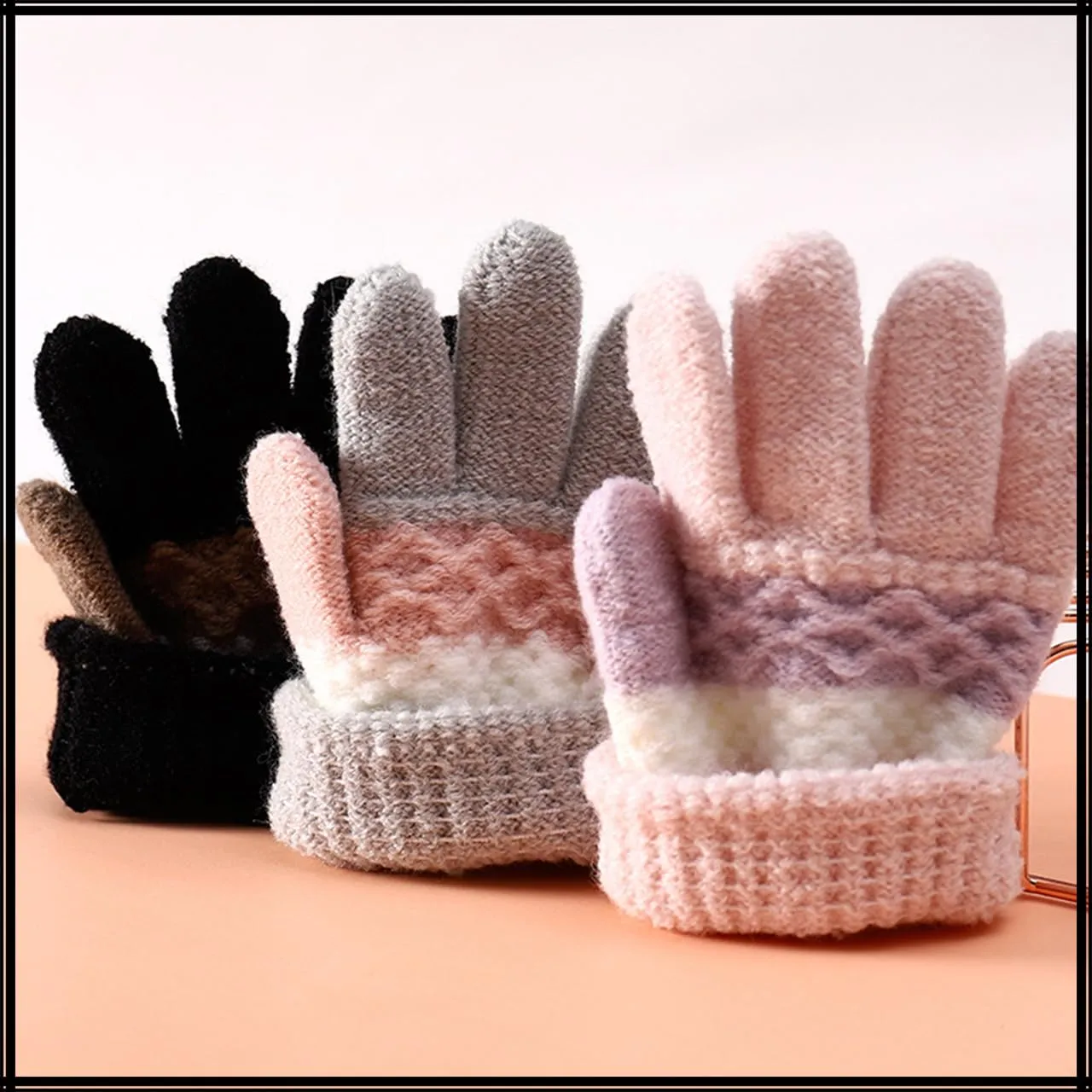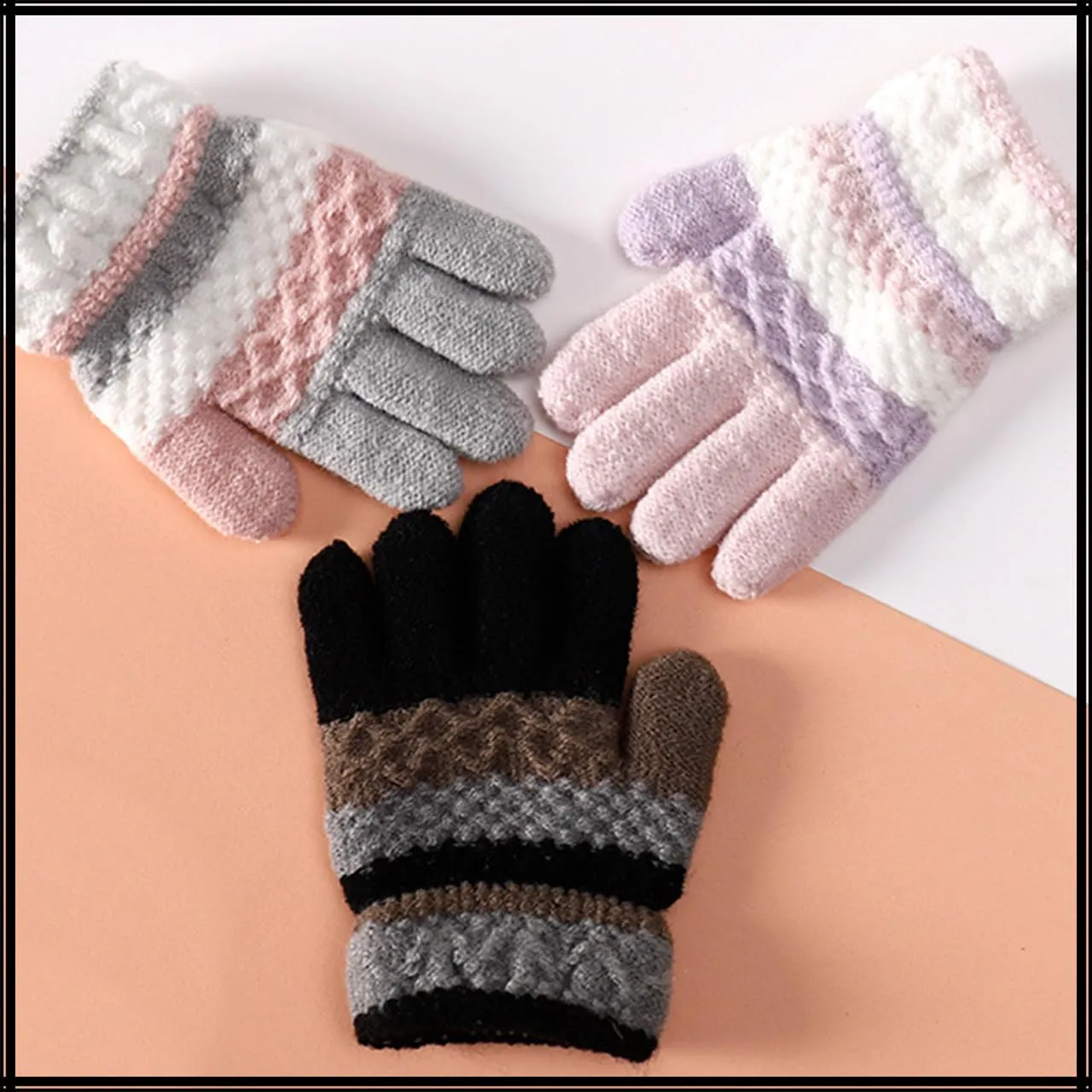 [ホワイトファング] 手袋 かわいい 防寒 グローブ ニット 秋冬 カジュアル 雪 暖かい 女の子 男の子 キッズ NT102(ブラック)