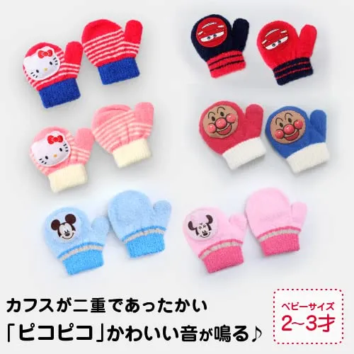 [GlovesDEPO] ワッペンを押すと「ピコピコ」とかわいい音が鳴る キッズのびのび笛付きキャラクター手袋 ミトンタイプ アンパンマン ブルー