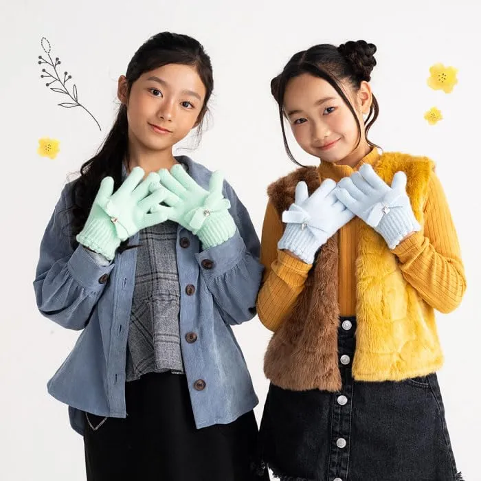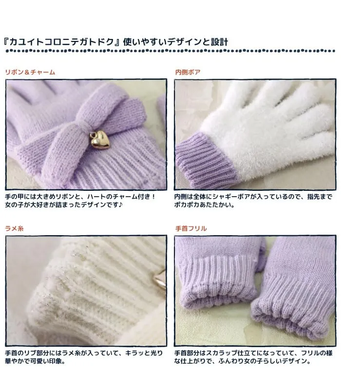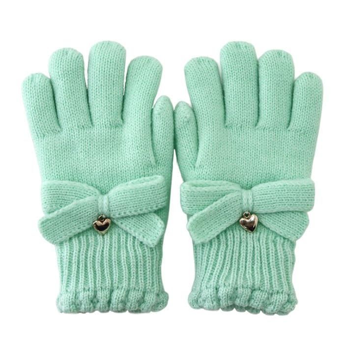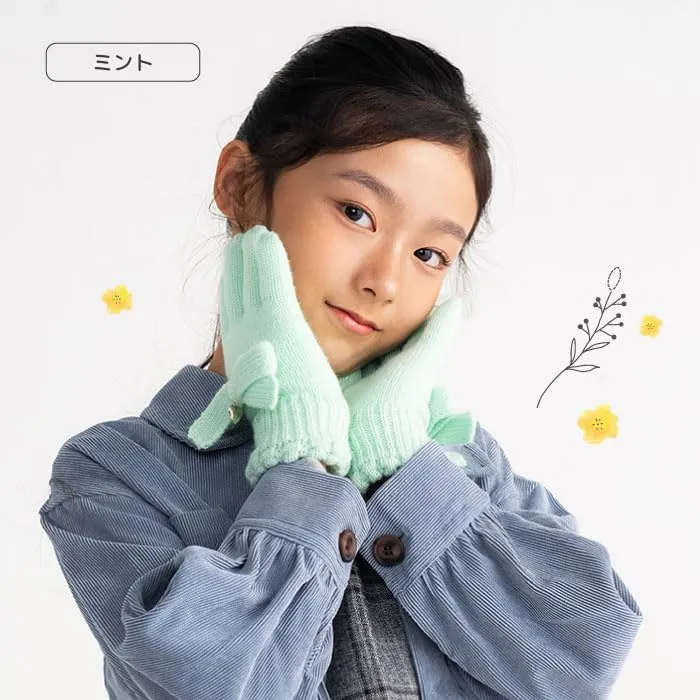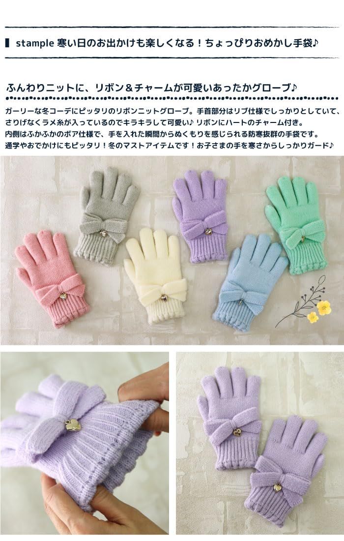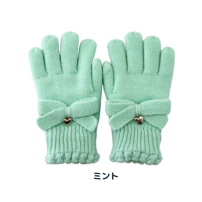 [スタンプル] リボンニットグローブ キッズ(ミント,Mサイズ) 子供 手袋 暖かい 冬 防寒 ボア リボン ハート ラメ お出かけ おでかけ あったかい 暖かい おしゃれ かわいい キュート 温活 小学校 中学校 通学 女子 女の子 てぶくろ