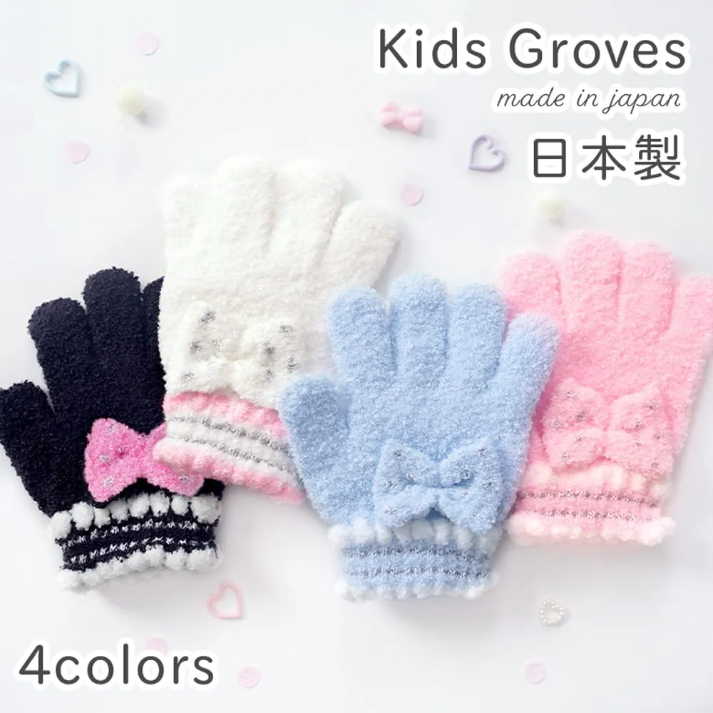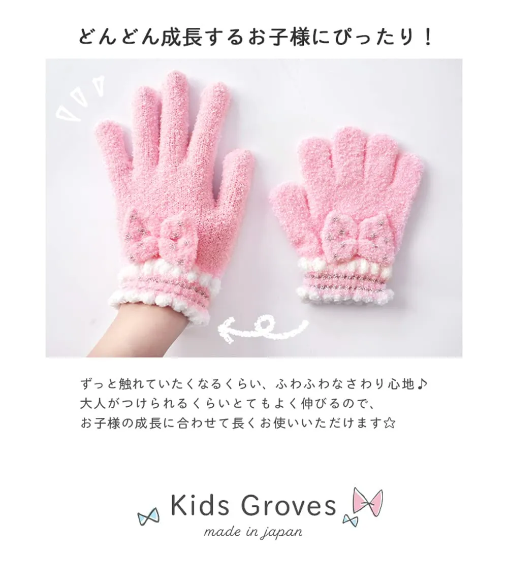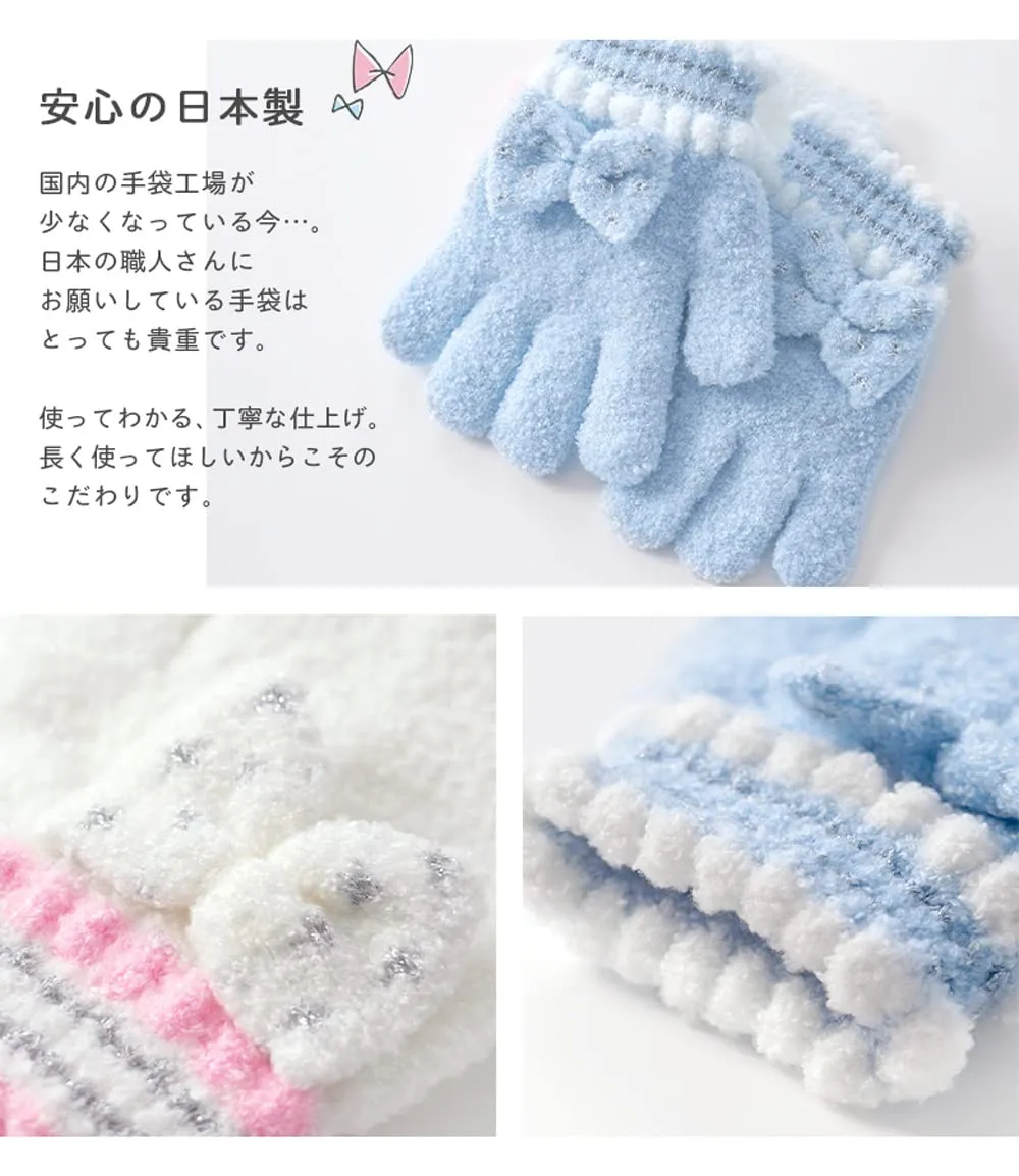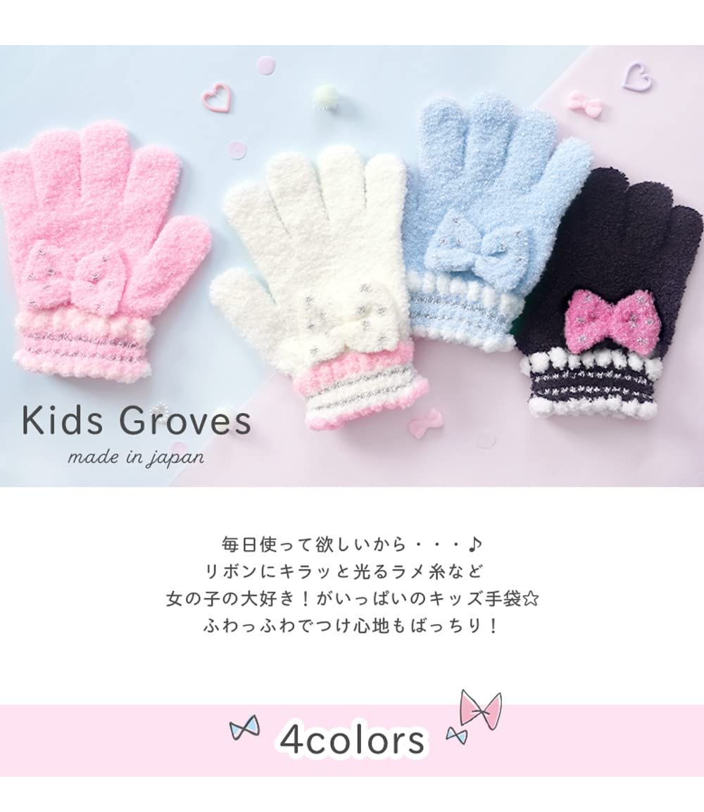 [アリサナ] 手袋 キッズ ニット グローブ 女の子 ジュニア 日本製 リボン C.ホワイト