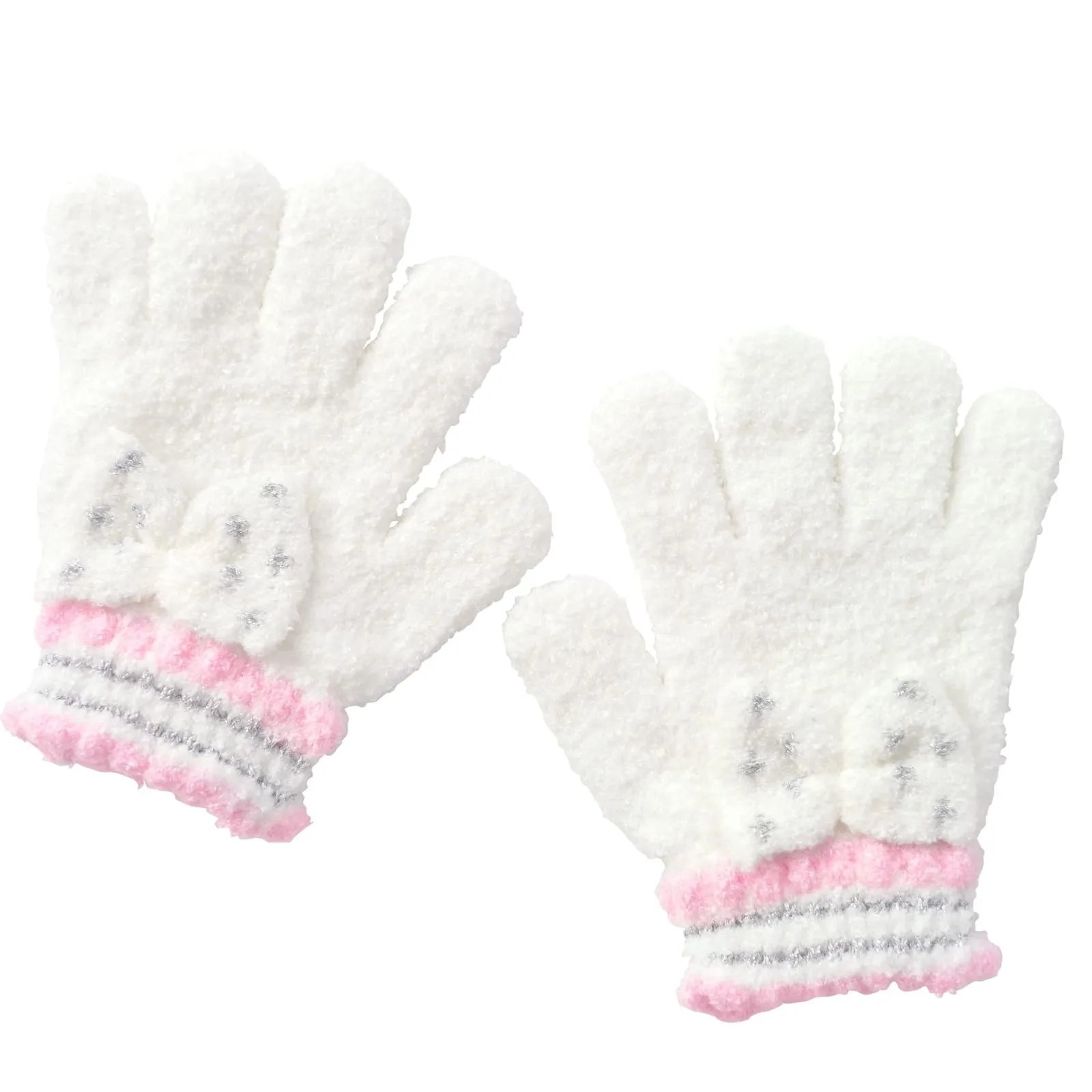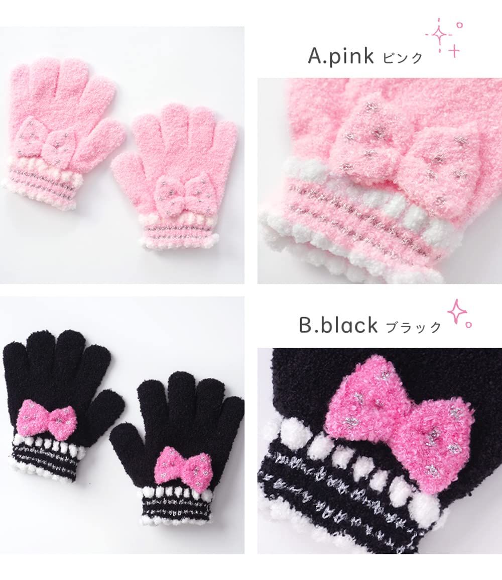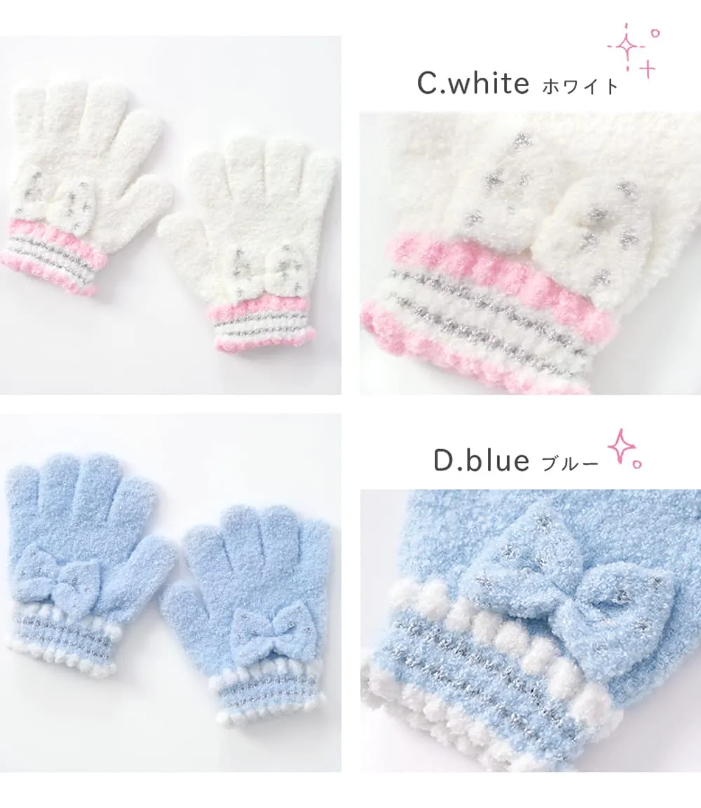 [アリサナ] 手袋 キッズ ニット グローブ 女の子 ジュニア 日本製 リボン C.ホワイト