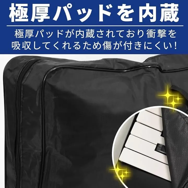 gtshop-goods 61鍵キーボードケース フルカバー 傷防止 極厚パッド 防水 手提げ リュックサック 持ち運び 外ポケット付き (ブラック)