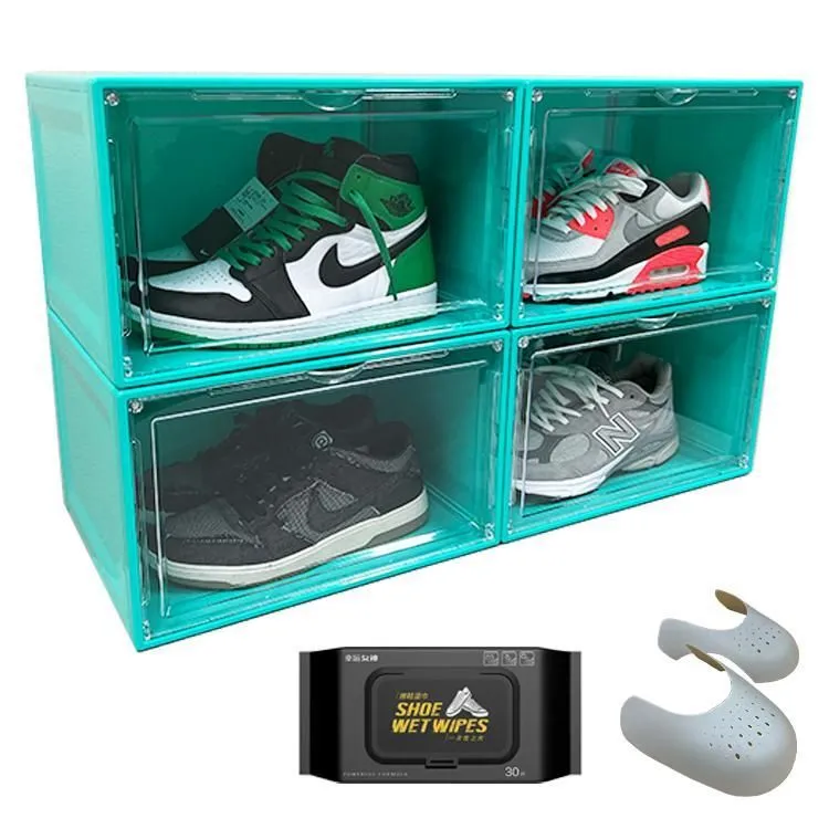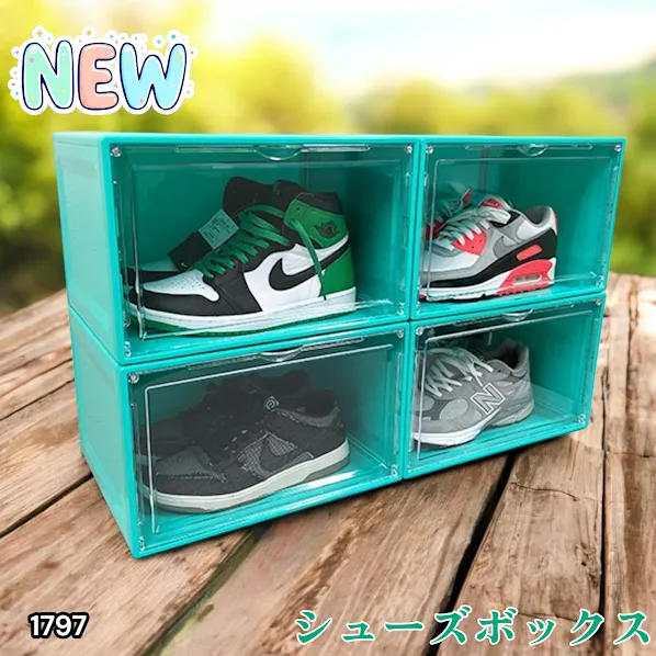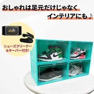 #1797 シューズ ボックス グリーン インテリア シューズクリーナー&キーパー付き 組み立て 簡単 大容量 大きな サイズ ハイカット 収納可能 ※一部地域離島別途配送料有