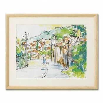 絵を主役にするシンプルなフレームの額です。F6号(410×318)の用紙が入るように中のマットの窓を(392×300)に抜いています。