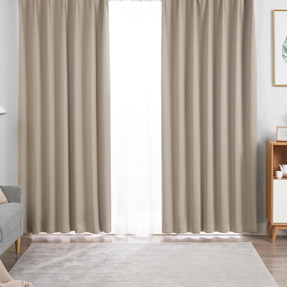 《訳あり新品★外箱段ボールにキズ・汚れあり・中身は新品です》Hansleep カーテン 1級遮光 幅150cm×丈135cm 2枚組 カーキ 厚手
