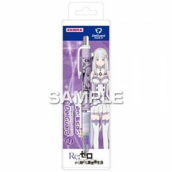 軸にTVアニメ「Re:ゼロから始める異世界生活」のイラストがデザインされたゼブラのデルガードです。芯が折れないシャープペンシルです。