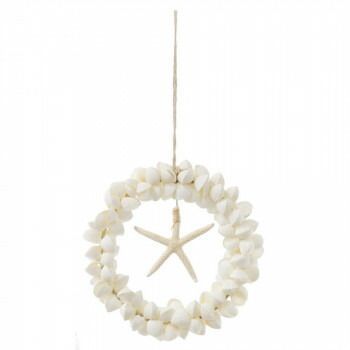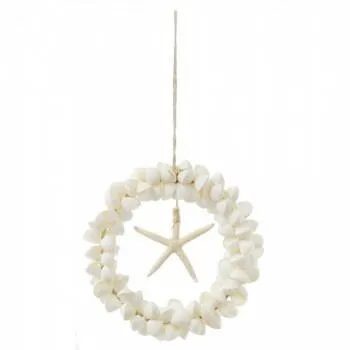 爽やかなホワイトのクラムシェル(2枚貝)とスターフィッシュのリースです。