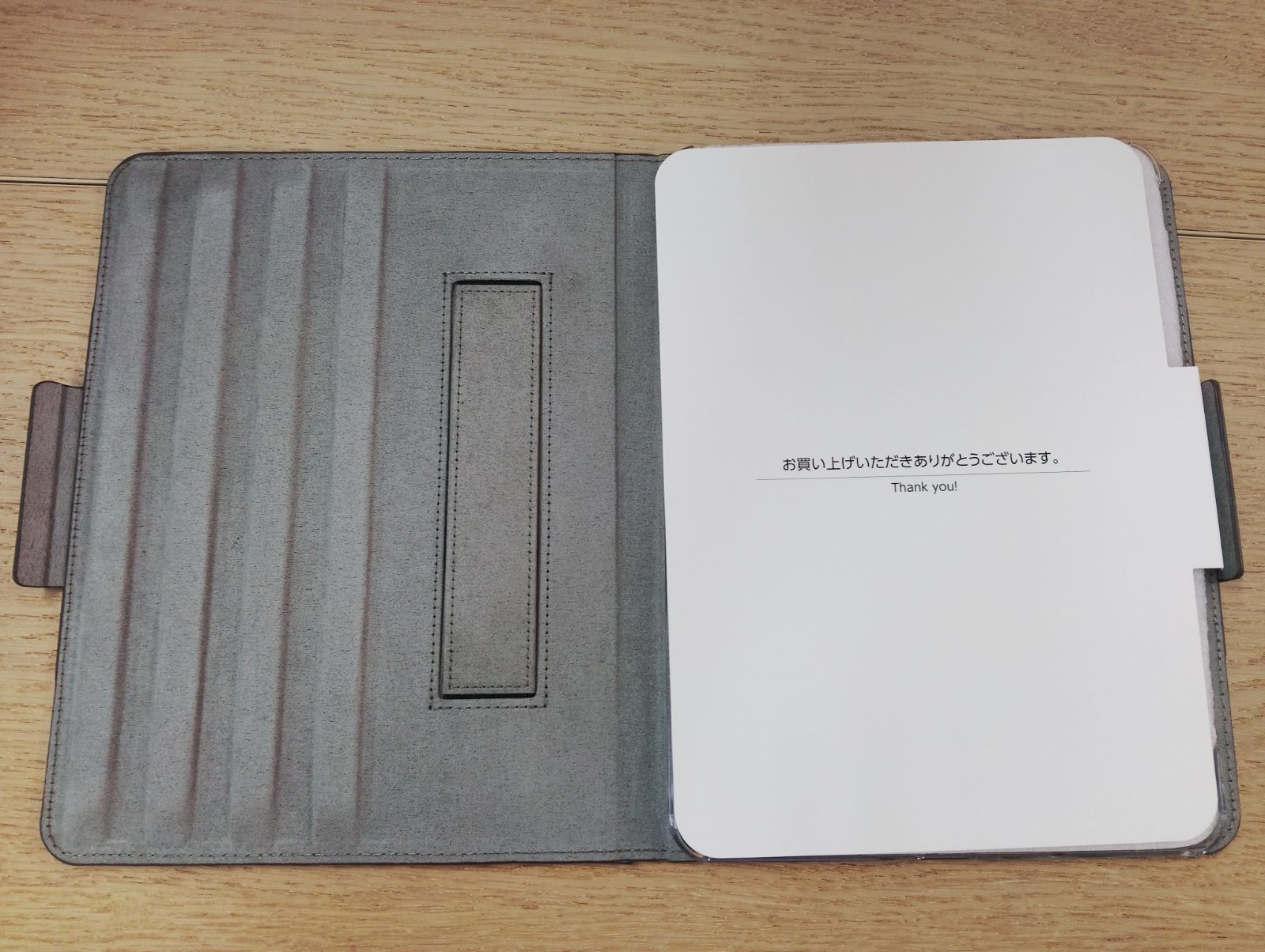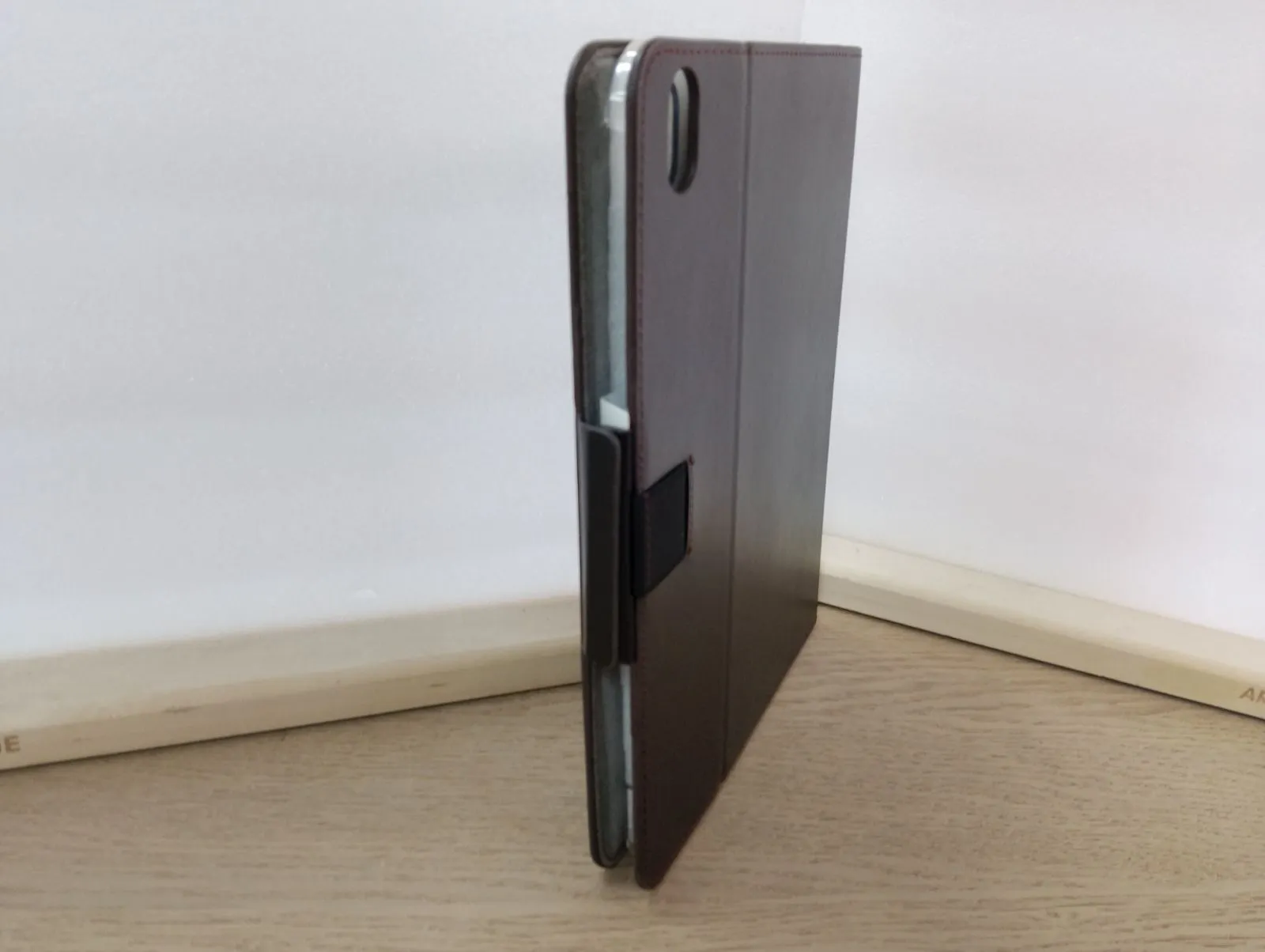 フラップ(蓋)部分はマグネットでピタッと固定。カバンの中でも不意に開くことがなく、画面を安全に守ります。