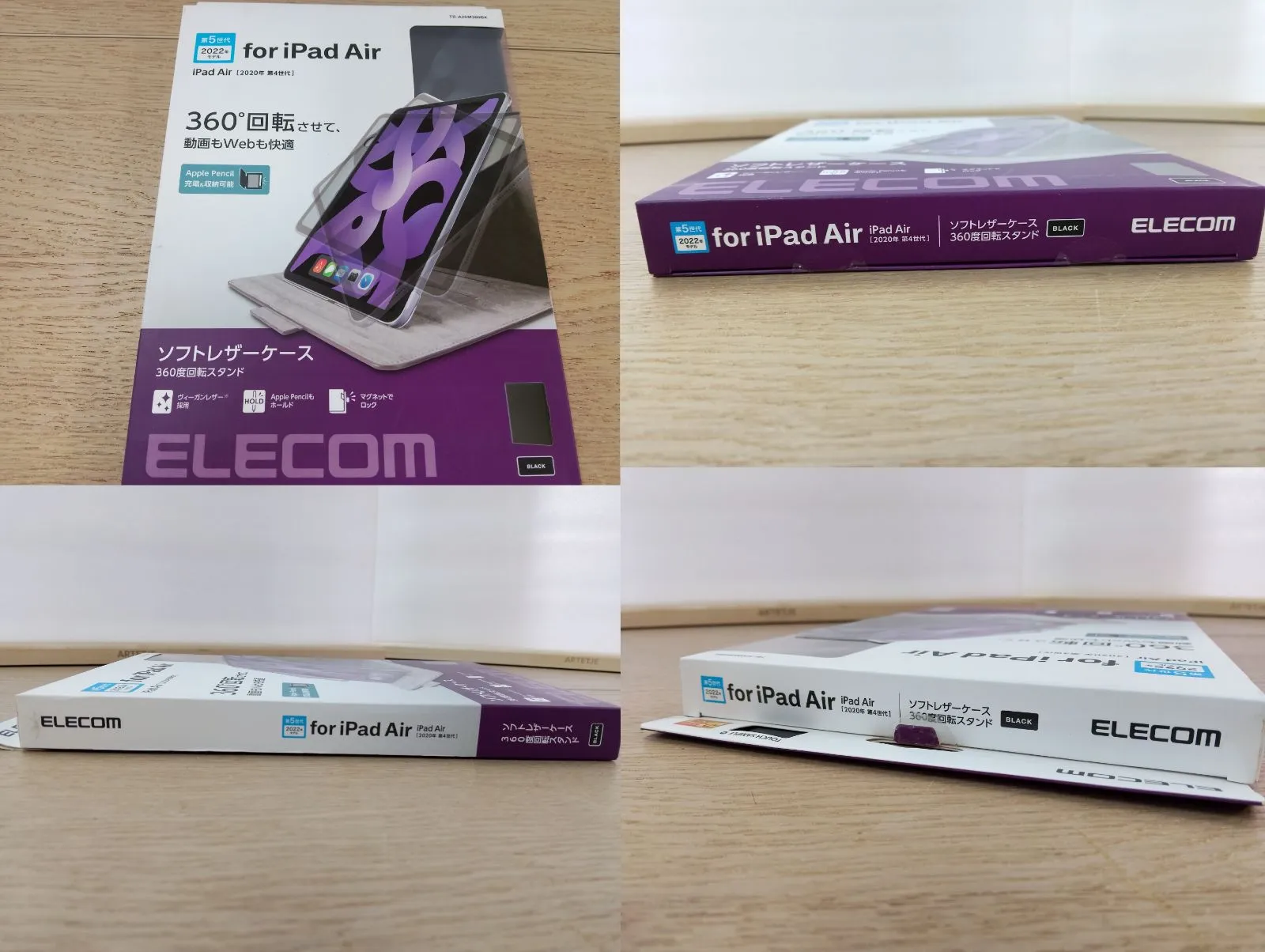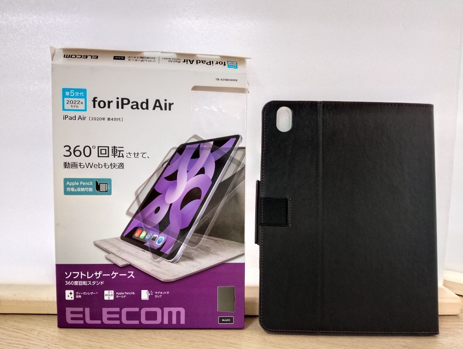 【訳あり・未使用】エレコム iPadAir第5/4世代 (2022/2020年) ケースカバー手帳型フラップ ソフトレザー マグネット360度回転タイプ アップルペンシル充電収納可能ブラック黒 デスクワーク お絵描きTB-A20M360BK管理TN503OHT