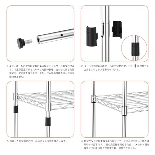 組立簡単スピード設置:複雑な組み立ての必要がなく、ワイヤー棚、パイプラック、地面に安定してフィットする足のアジャスター。組み立てに道具不要。簡単なインストール。