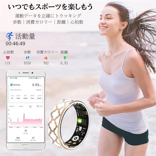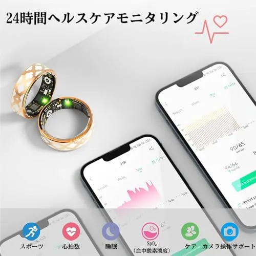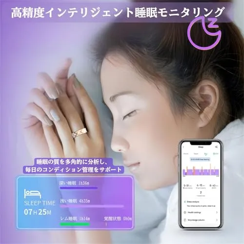 【24時間ヘルスモニタリング】 スマートリングが心拍数、血中酸素レベル、睡眠状態を24時間自動で記録。専用アプリでデータを分かりやすく可視化し、仕事中・運動中・睡眠中など、日常のあらゆるシーンにおける身体の状態をいつでも確認できます。健康管理や生活習慣の改善をサポートします。