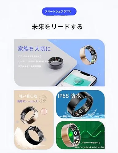 新モデルアップグレード:スマートリングは最新技術を採用し、健康管理をさらに新次元に引き上げます。スマートウォッチとは異なり、私たちの製品は指にはめるだけで使用可能です。3 種類のセンサーを搭載しており、いつでも健康データを測定でき、身体状況をより簡単に把握することができます。さらに、リングの形状はファッショナブルで装着感にも優れており、一日中つけていても負担にならず、落ちる心配もありません。