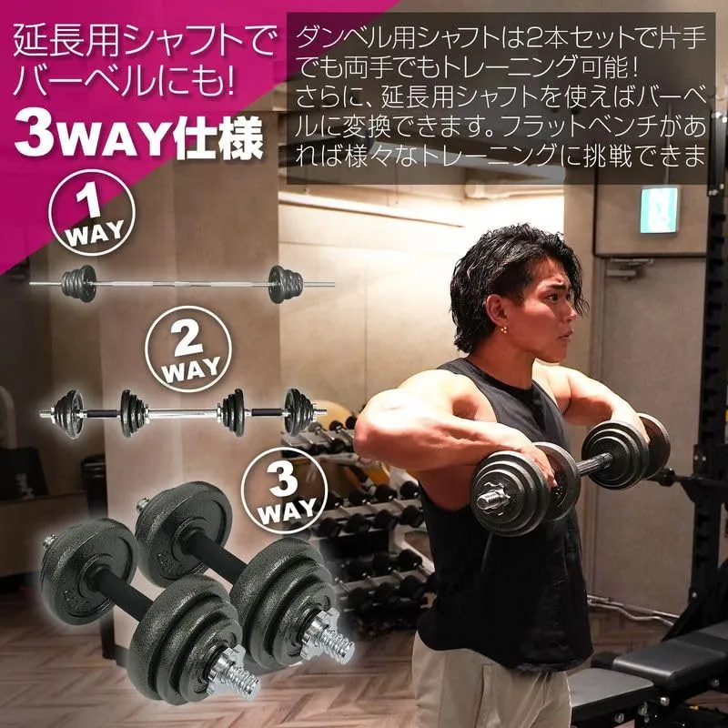 【バーベルにもなる 可変式ダンベル】TOP FILMの可変式ダンベルは3WAY仕様でバーベルにもなるダンベルです。