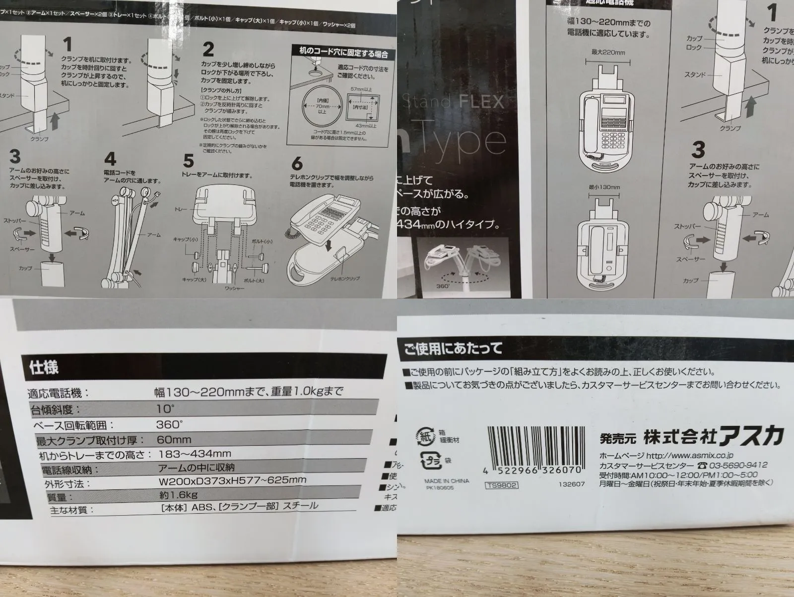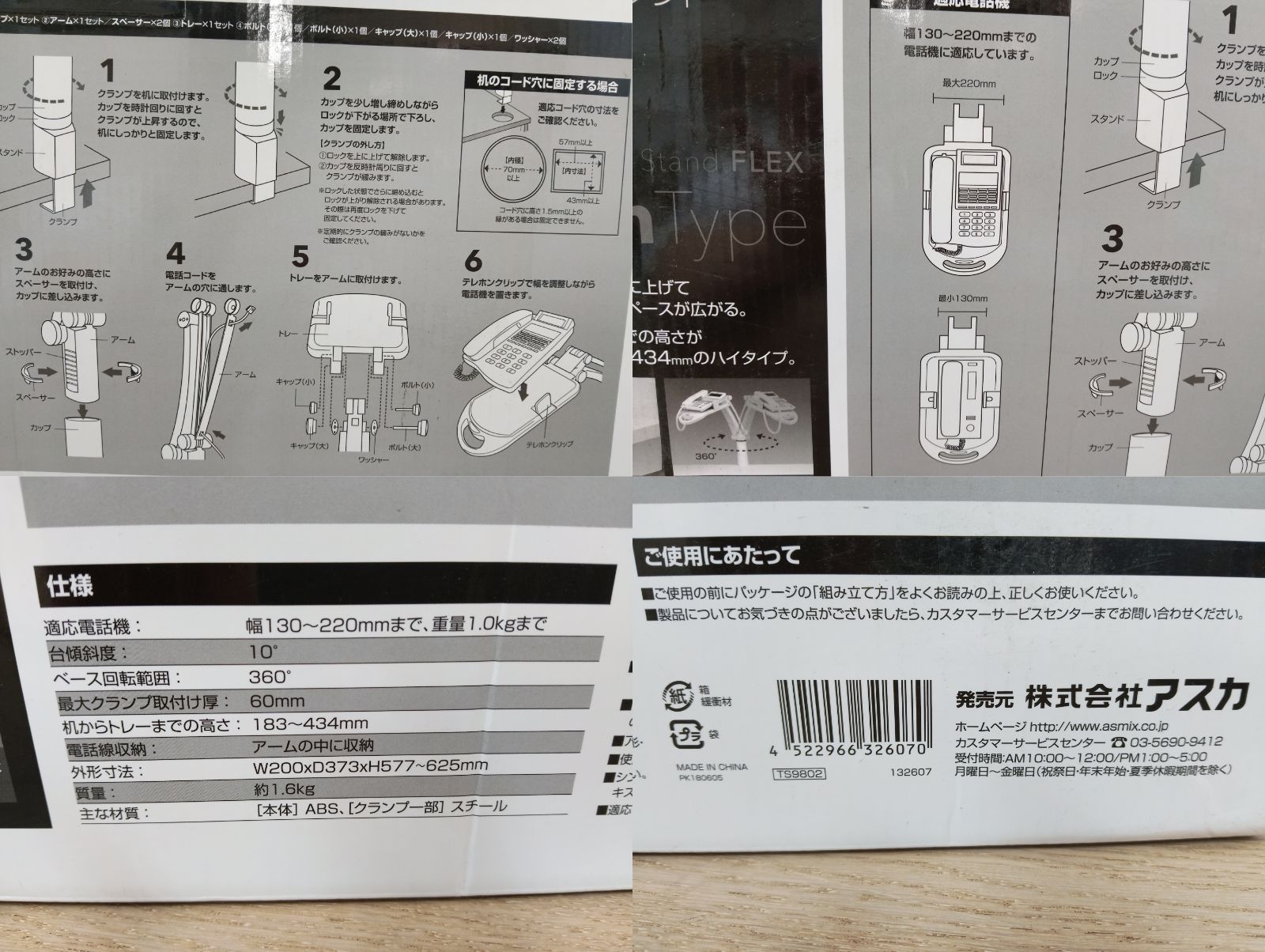 【訳あり】アスカ テレホンスタンドフレックスハイタイプ 白 ホワイト 共用電話 TS9802 縦型デザイン オフィス 店舗 机上 電話応対 事務所 事務職 デスク周り 受付・カウンター 設置・移動が可能 配線スッキリ 管理番号TN504OHT