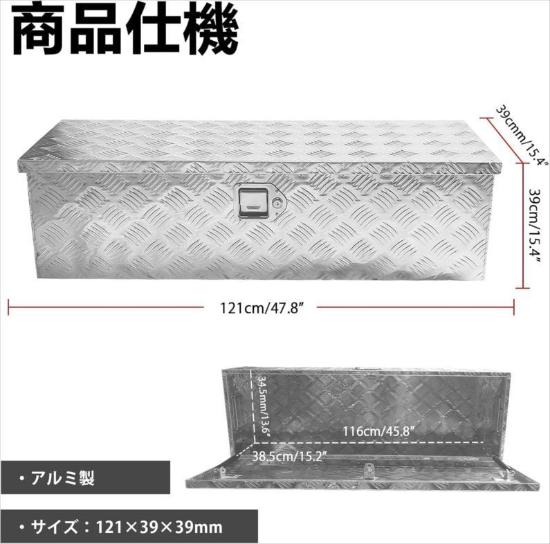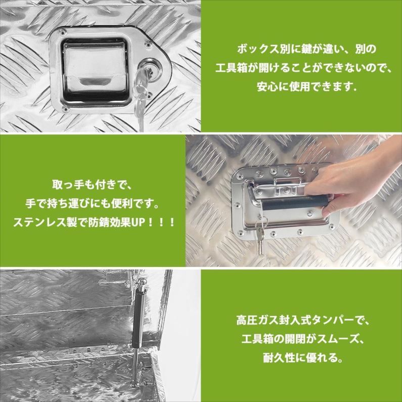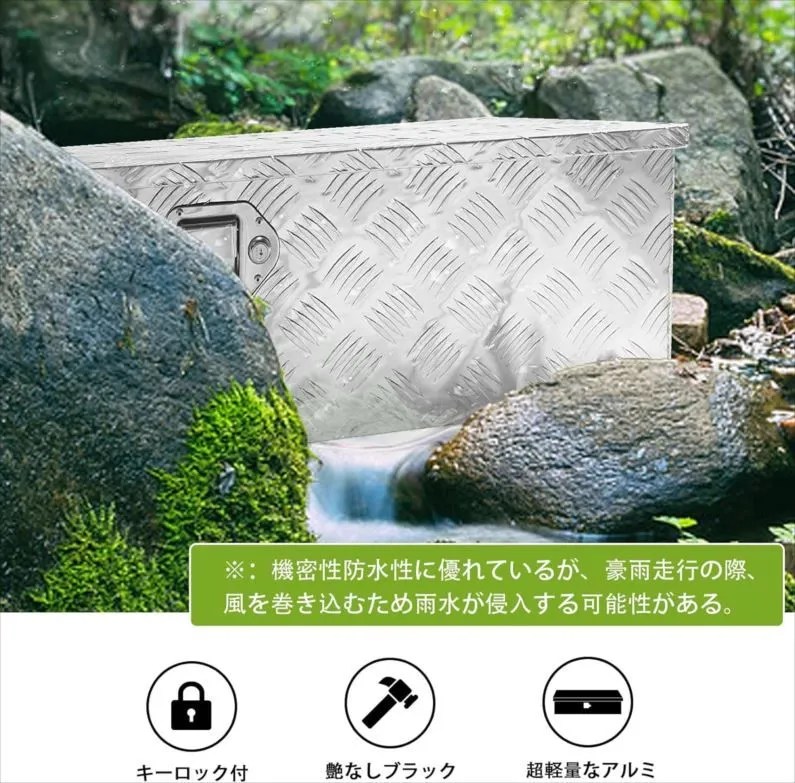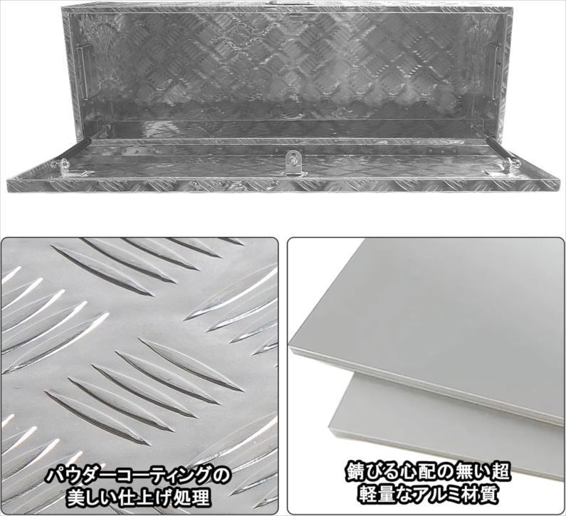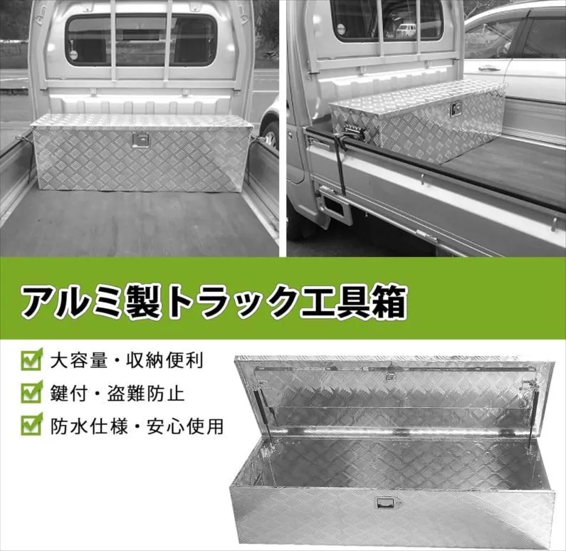 E1181◆訳あり・未使用 トラック工具箱 ツールボックス アルミボックス 軽トラ 荷台 収納ボックス 庭園 工具 収納倉庫 道具箱 収納箱 取っ手 ロック金具付き ポソヴァク・JB-T001