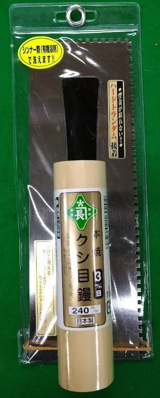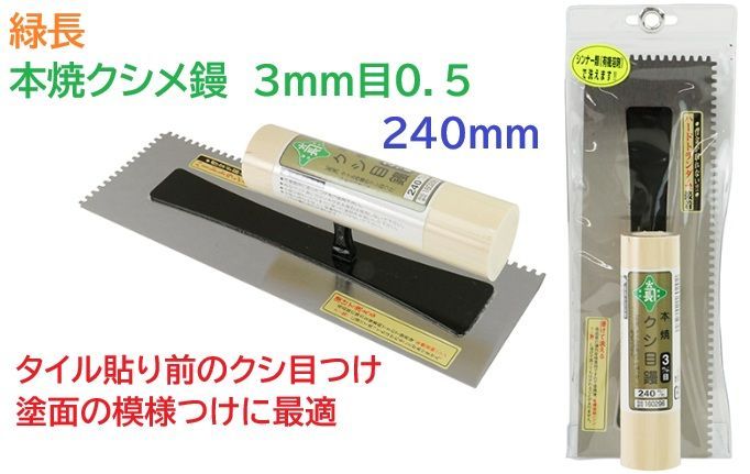 緑長 本焼クシメ鏝 3mm目0.5 240MM 1個 クシメ鏝 鏝 左官 コテ
