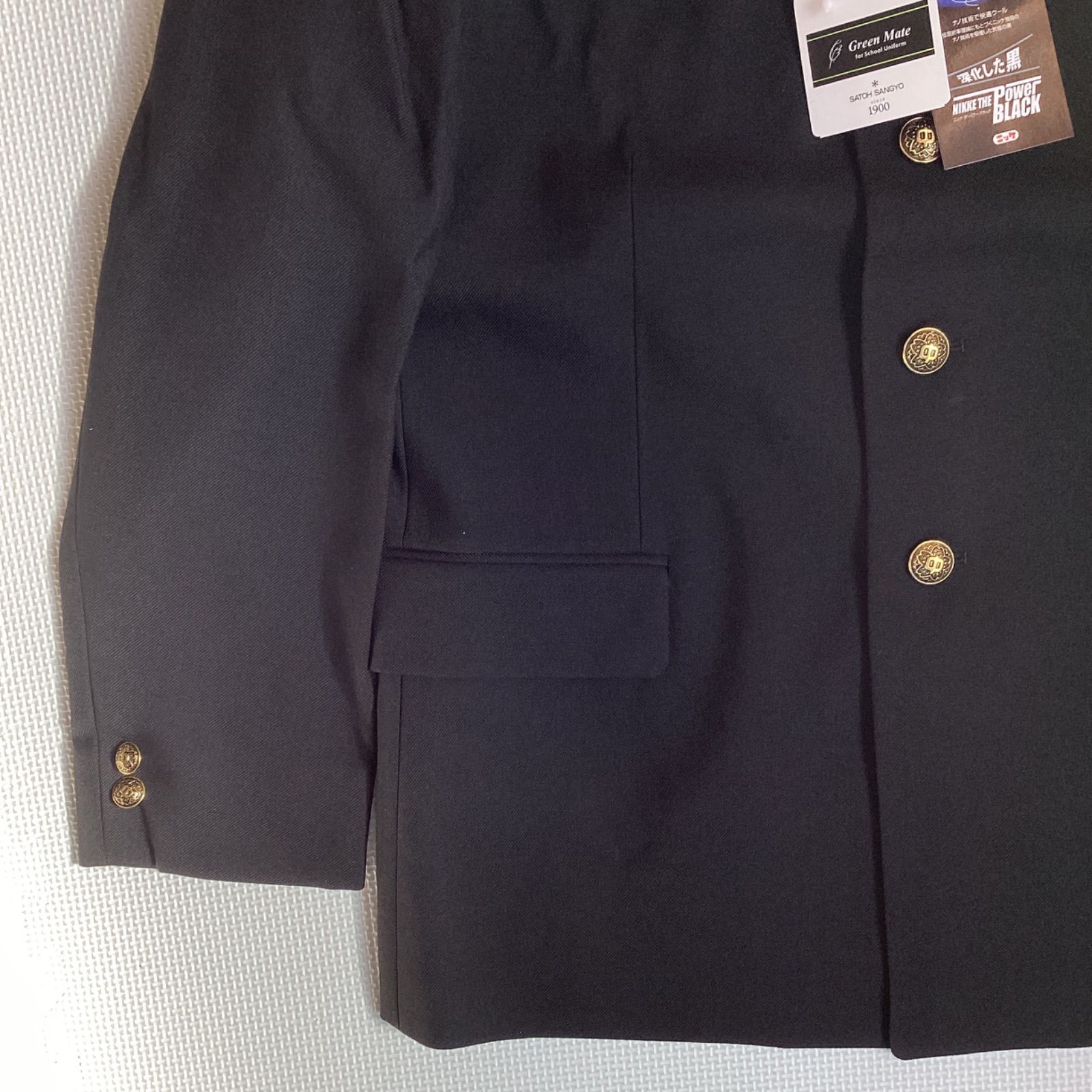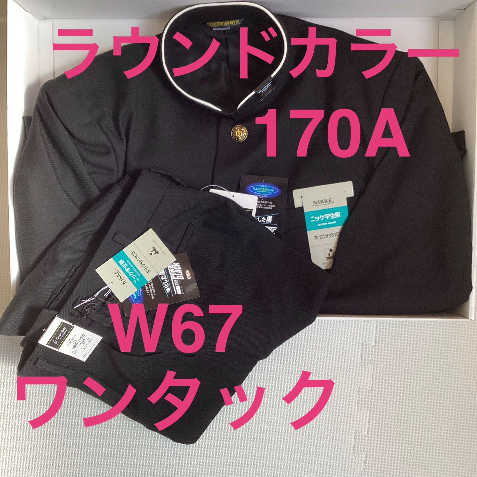 男子 学生服 上下セット 170A ラウンドカラー 20050 W67 学生ズボン ワンタック 股下フリー 21050 学ラン 詰襟 新品未使用品 ポリエステル50% 毛50% NIKKE THE Power BLACK