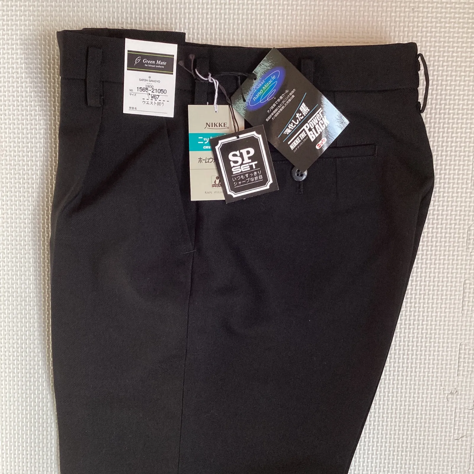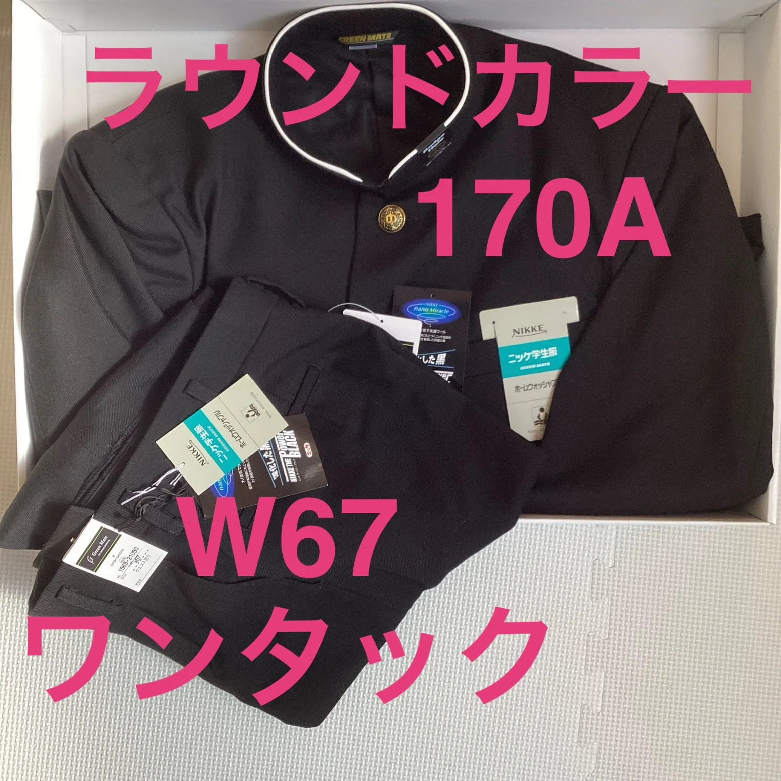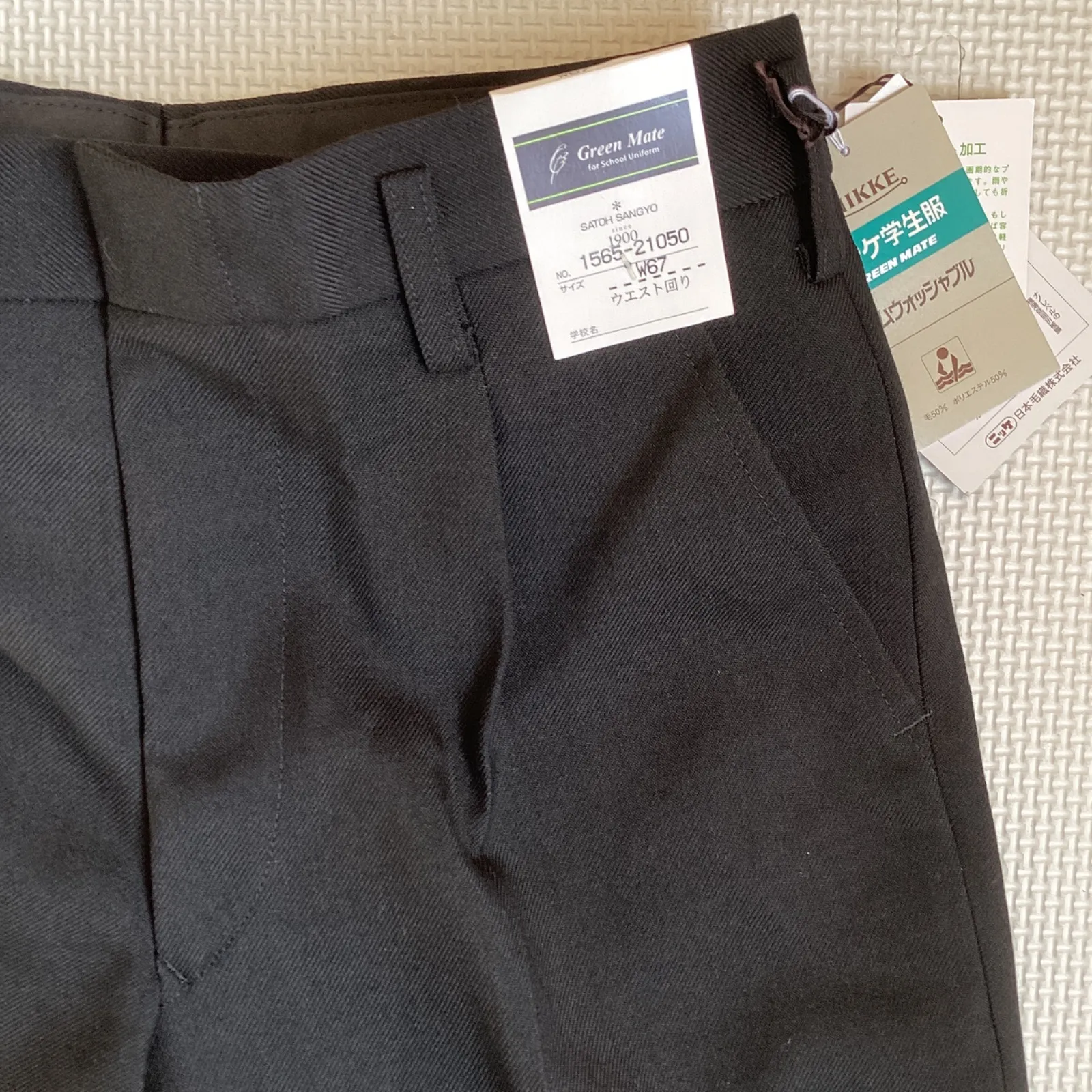 【ズボン(ワンタック)21050】 ※裾上げされておりません。 素材・・・表地:毛50% ポリエステル50% サイズ・・・W67 総丈・・・112cm 股下・・・90cm わたり幅・・・31.5cm 裾幅・・・21cm 上下セットの学生服です。 ホームウォッシャブル ニッケ学生服 深化した黒 NIKKE THE POWER BLACK GREEN MATE 新品未使用ですが保管品のためたたみじわ、よれがあります。 ご理解頂いた上でご購入下さい。 ※専用箱で発送いたします。 ※サイズ及び仕様をご確認の上、購入下さい。 ※土・日・祝日は発送をお休みさせて頂きます。 S-34