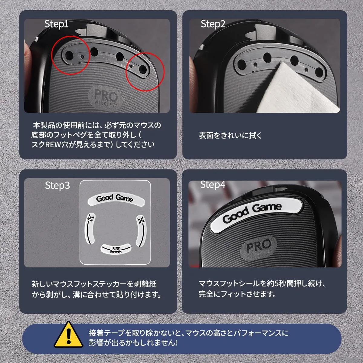 簡単インストール: 磨り減ったマウスフットの交換が簡単に行え、最適なトラッキングとコントロールを維持することができます。
