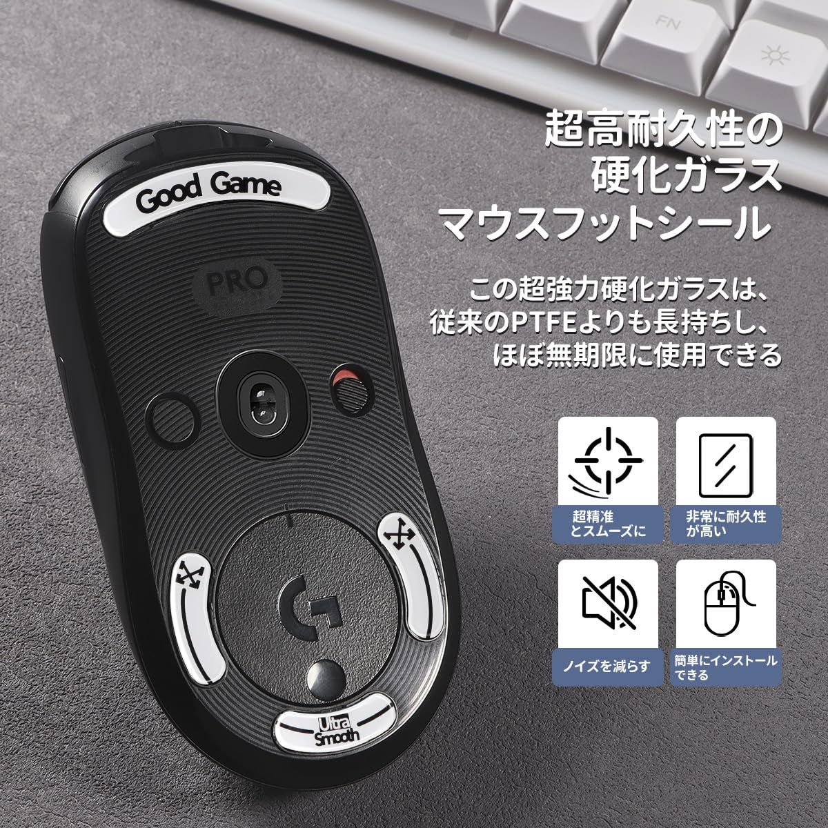 対応製品: 本製品は2024年モデルのロジテック Logicool G Pro 2 Lightspeed / Logicool G PRO Wireless 無線ゲーミングマウス向けに設計されています。内容物には、ガラスマット + インストールツール + クリーニングツールが含まれます。