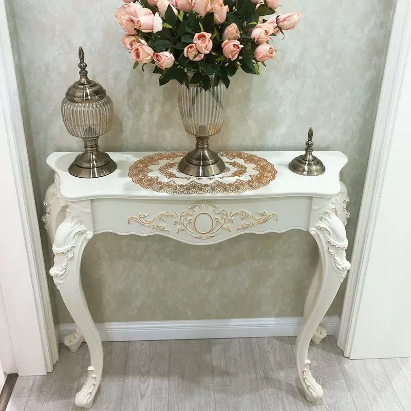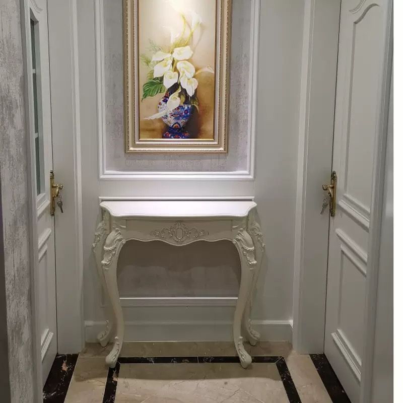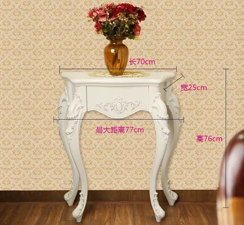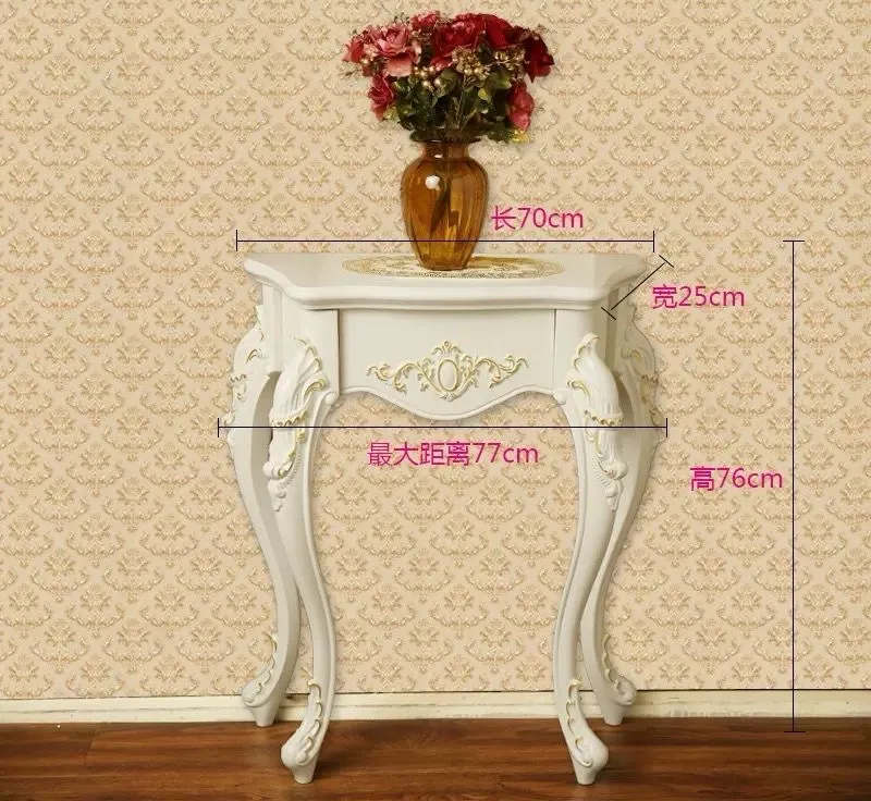 大好評☆おしゃれな装飾コンソールテーブル幅25cmの細めのエントランステーブル錦太い脚の重厚なエントランステーブルホワイトのディスプレイテーブル(Size:70*25*76
