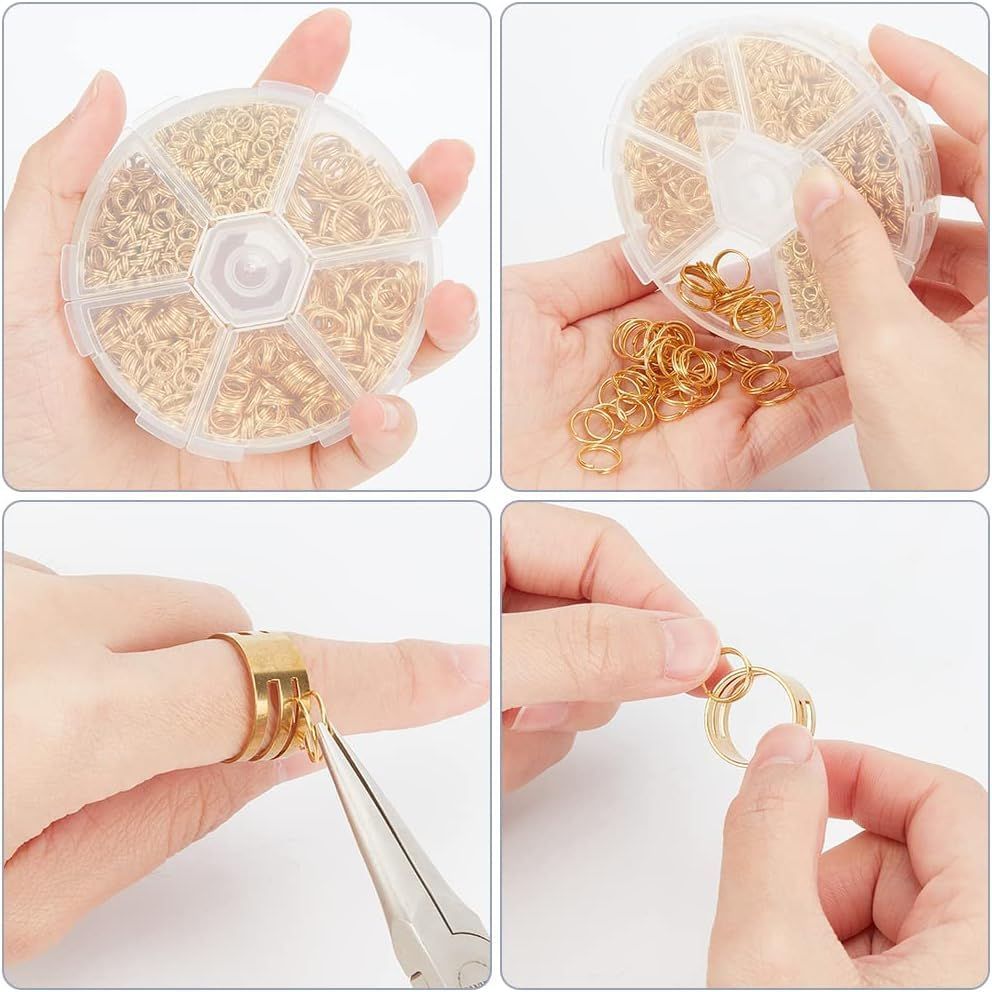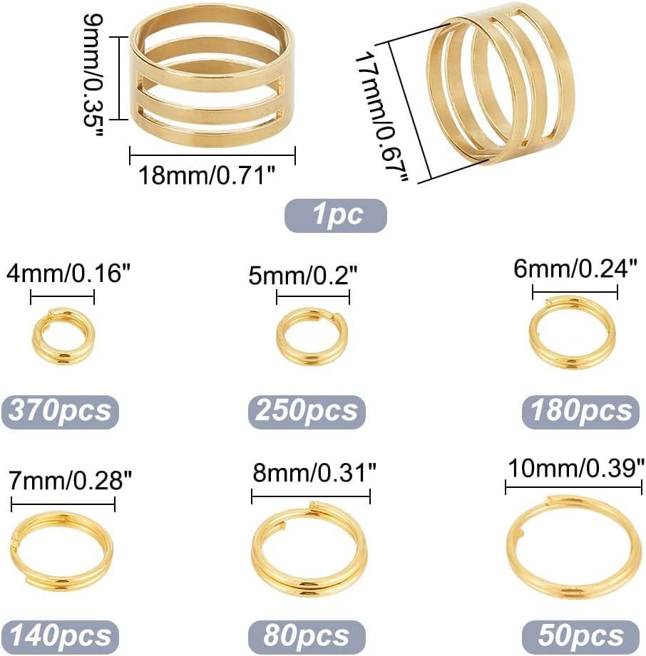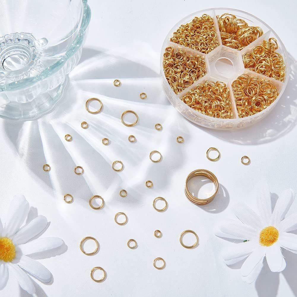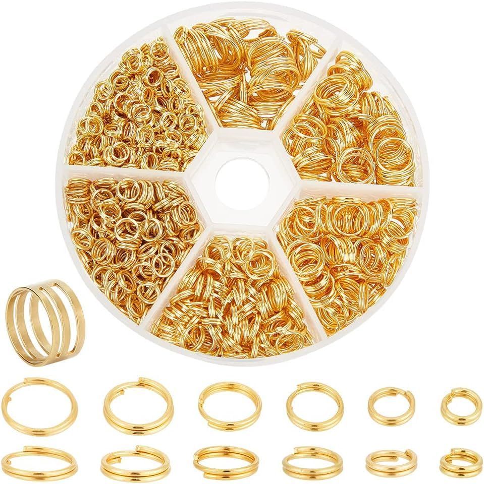 PH PandaHall 6種 4-10mm 二重丸カン リング マルカン 丸環 金具セット 基礎パーツ ジュエリー DIY用 クラフト手芸用品 アクセサリーパーツ ハンドメイド ブレスレット ゴールド