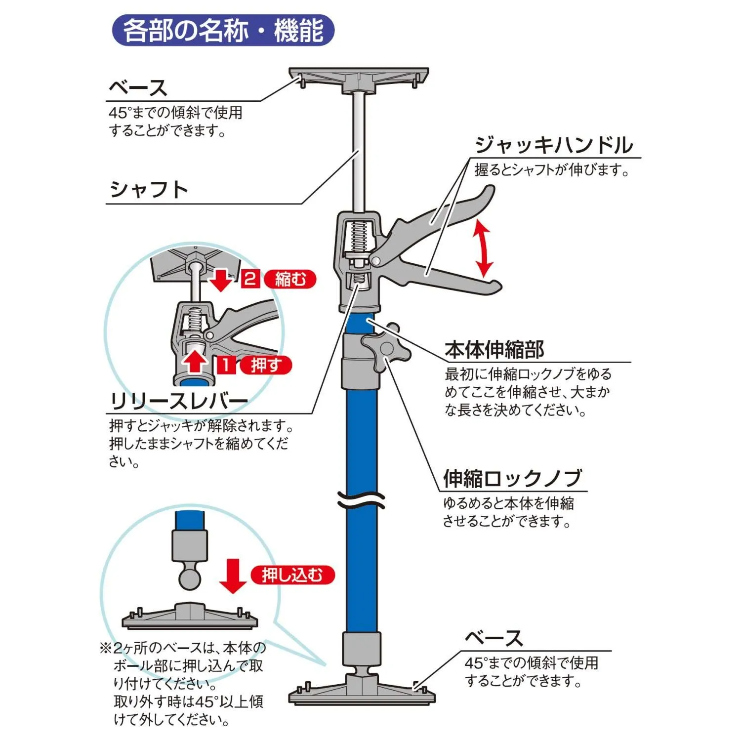 【フォロー頂いた方限定!】※不定期 大変お得な クーポン を発券しております! フォロー頂けないと確認できないので お手数ではございますがページ下プロフィールより ボタンひとつ 「ポチッ」 だけおねがい致します|ω・) ------------- 新潟精機 BeHAUS サポートリフター 50-115cm SLG-115 最大耐荷重:196N(20kgf) 最大耐荷重(N):196 ※両ベース0°時 全長(cm):50-115 最大伸長(cm):28(伸縮部)、37(シャフト) 本体材質:スチール 本体寸法(mm):W200×H500×D80 / 本体質量(g):1020 内装作業のサポートに 天井部材の保持に最適です。 45°まで傾斜するベースで斜めの対象物も安定したサポートができます。 すべりにくく、加工物を傷つけにくいラバー付です。 -------------