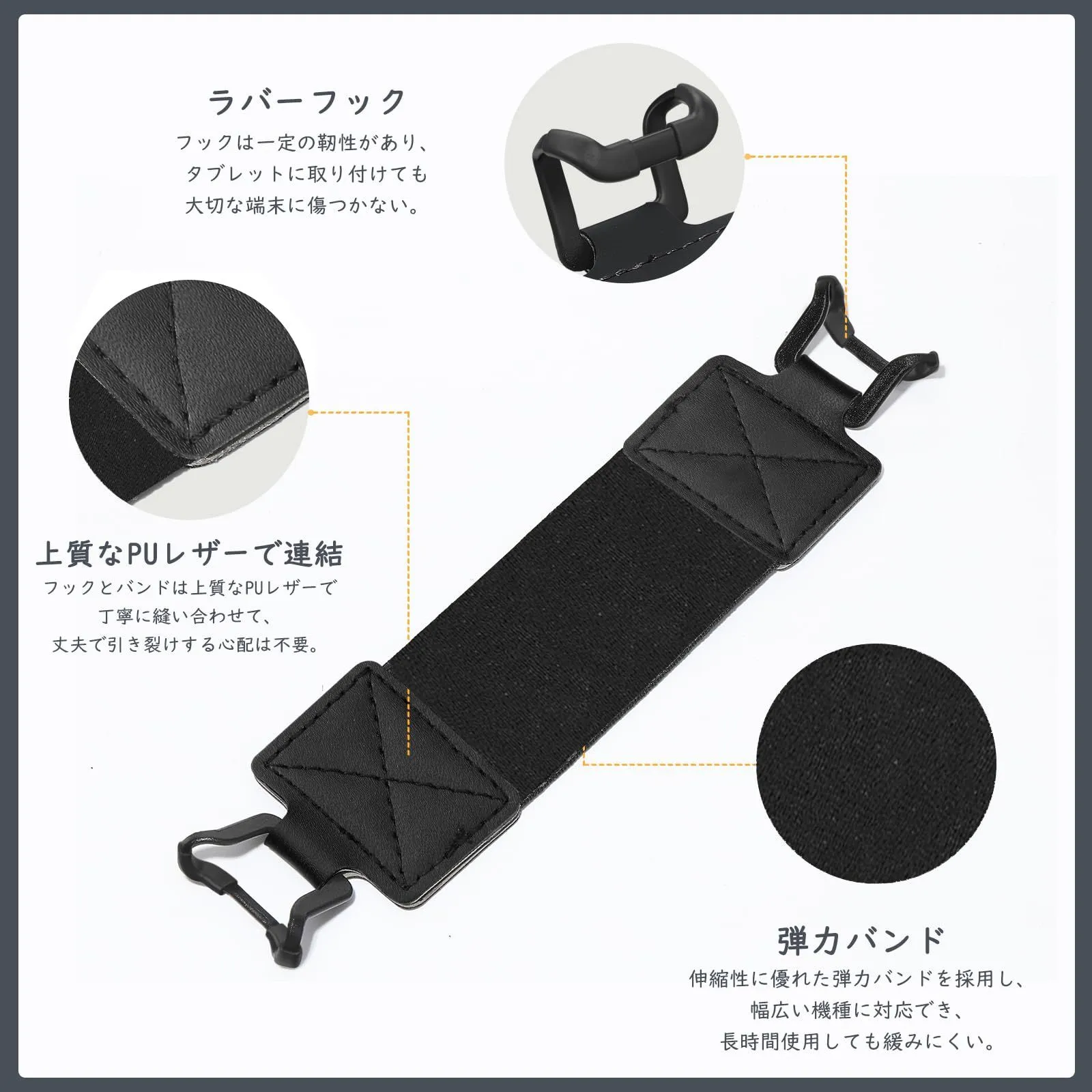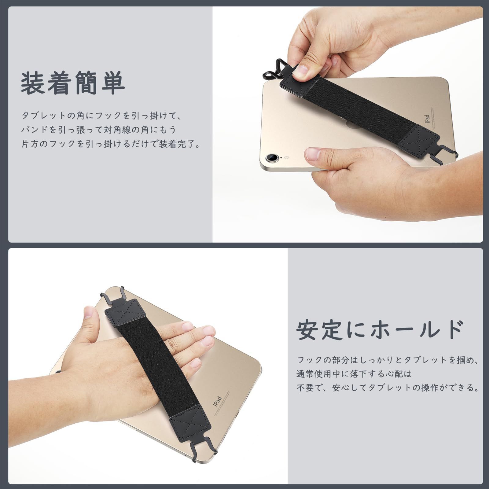 【フォロー頂いた方限定!】※不定期 大変お得な クーポン を発券しております! フォロー頂けないと確認できないので お手数ではございますがページ下プロフィールより ボタンひとつ 「ポチッ」 だけおねがい致します|ω・) ------------- TiMOVO タブレットバンド 2個入り タブレットPC用安全ハンドストラップ 片手持ち 落下防止 取り外せる 6-8インチ 対応-iPad Mini7/6/5/4世代、kindle paperwhite、Fire7、Fire HD 8、FPad6/7/7Pro、iPlay 60/70miniPro 黒Band+ブラック 「対応機種」 両端のフック+弾力バンドが伸ばされていない状態下の全長は約17CMありますので、iPad Mini 第7/6/5/4/3/2/1世代、Kindle Paperwhite、Fire7、Fire HD 8 & 8 Plus、alldocube iPlay 60/70miniPro、Headwolf FPad6/7/7Pro、TECLAST T50、Bmax I8 Plus など6~8インチまでのタブレットに適用します。お手元の端末の寸法を予めご確認の上ご購入ください。 「伸縮性のいいバンド」 優れた伸縮性がある弾力バンドを採用し、幅広い機種に対応でき、長時間使用しても緩みにくいです。上質なPUレザーを使用してフックの部分と丁寧に縫い合わせて、丈夫で引き裂けする心配は不要です。フックの部分は一定の靭性があるラバー素材を採用し、タブレットに取り付けても大切な端末に傷つきません。 「取り扱い簡単」 軽くて簡単な構造の設計で、タブレットの角にフックを引っ掛けて、バンドを引っ張って対角線の角にもう片方のフックを引っ掛けるだけで装着完了です。使わない時にはポケット、バッグなどに入れられ、お荷物の負担にならず、タブレットをそのまま使いたい方々にオススメです。Kindle paperwhiteなどより軽い端末の場合は上下の方向で取り付けることも可能です。 「快適な片手持ち」 長時間タブレットを持っていると重く感じて手が疲れますが、このアイテムがあれば、タブレットの重量を手の全体、更に手首まで分散でき、より快適にタブレットを使えます。使用中手の疲れやうっかりして落下するリスクも防げます。フックの部分はちょうどタブレットにしっかりと掴める大きさで、タブレットの操作に干渉しません。 「様々の適用場面」 タブレットケース装着しない派に是非オススメしたい一品です。フックの部分はちょうどタブレットにフィットするようなサイズで、保護ケースを取り付ける場合は、できるだけ薄型のケースを装着して本製品をご利用ください。打ち合わせ、授業などの時に資料を確認したり、メモを取ったりして、片手でタブレットを持ち歩いてもしっかりと掴められ、使い心地がいいです。カフェや公園などでのんびりと読書したり、絵を描いたりする時にも大変役に立てるアイテムです。 ブランド TiMOVO 色 6-8inchブラック グリップタイプ ストラップグリップ 商品寸法 (長さx幅x高さ) 17 x 4 x 1 cm 取り付けタイプ 粘着式 -------------