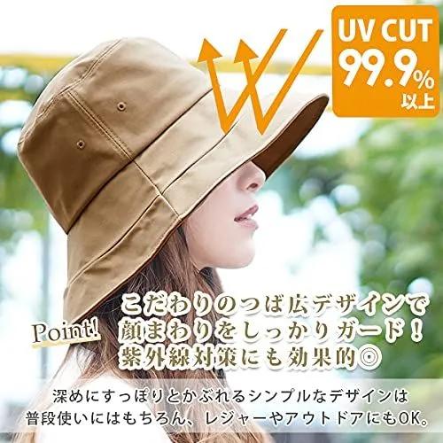 [hanahana15] ハット レディース UVカット キャペリン 大きいサイズ 深め 大きめ 遮光 コットン100% 帽子 春夏 紫外線 あごひも 洗濯可 夏 つば広 綿 サイズ調整 シンプル 女性