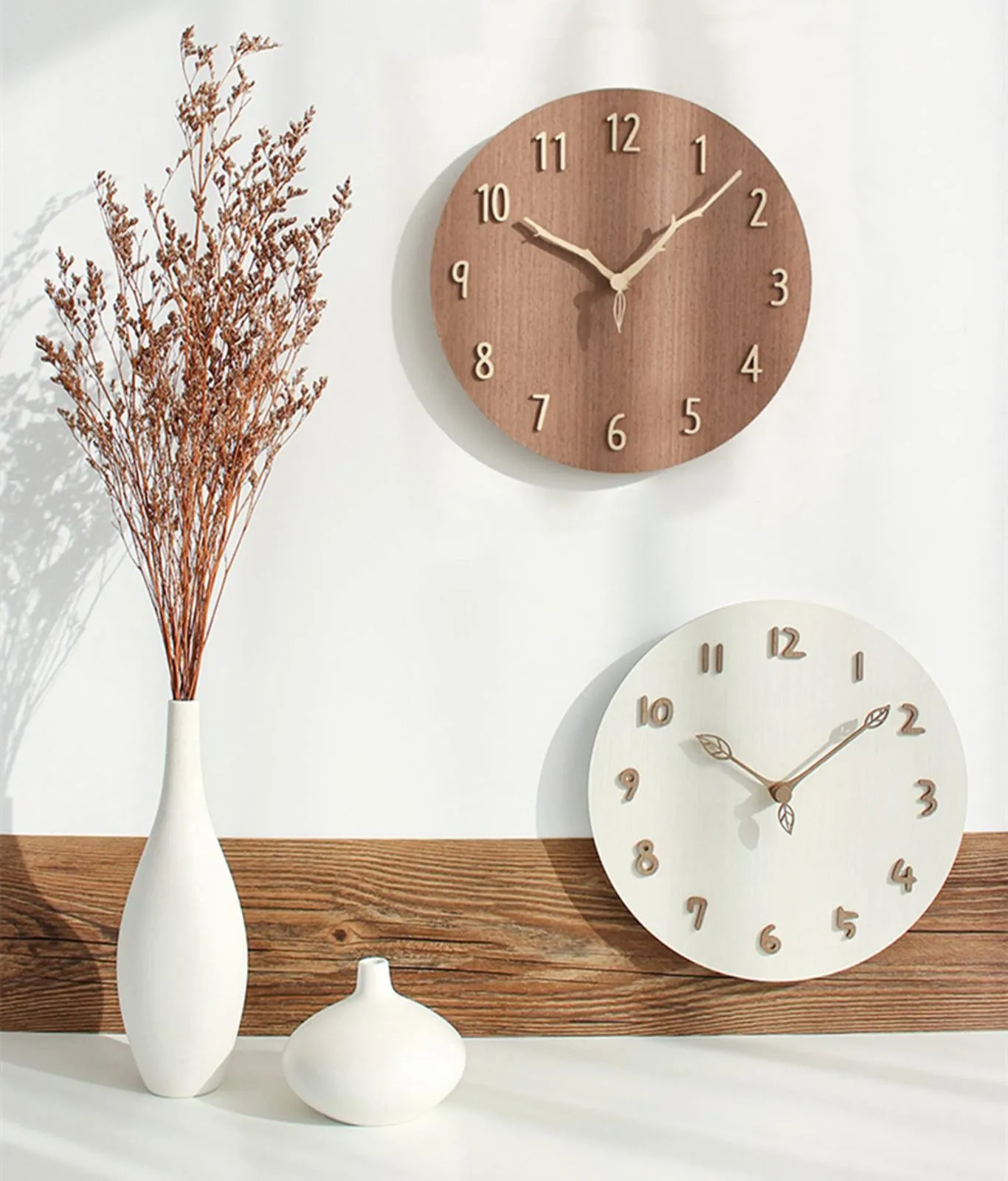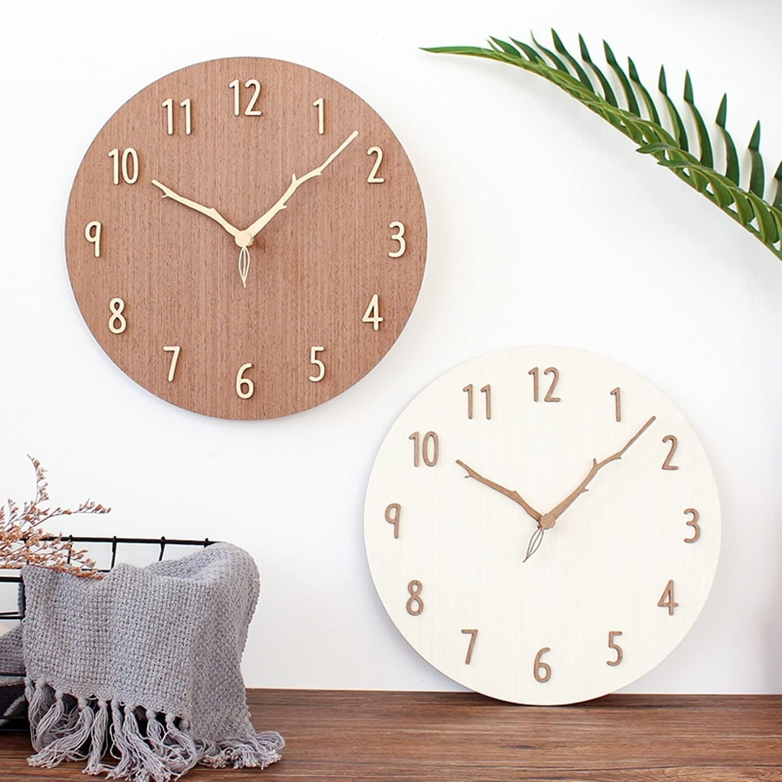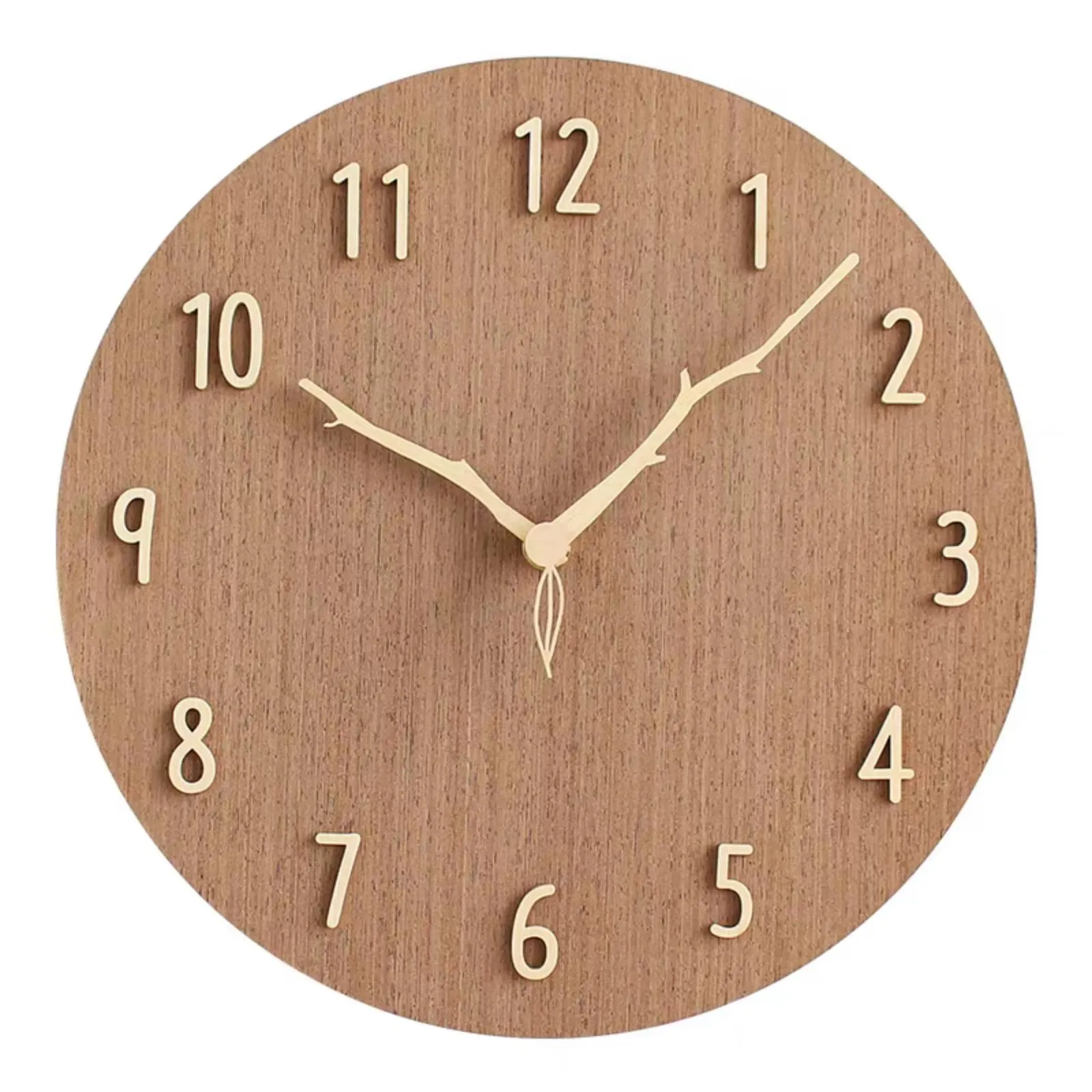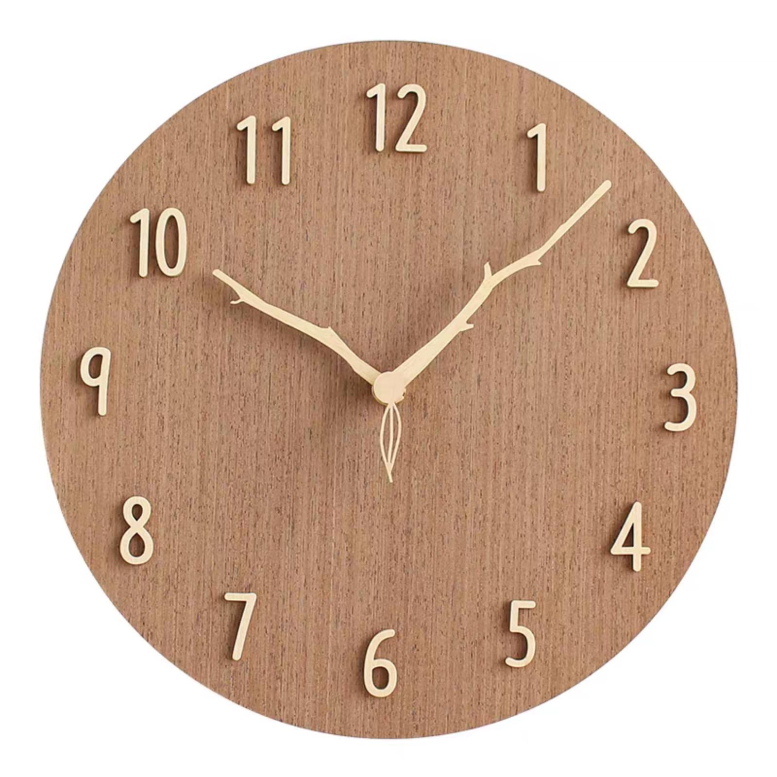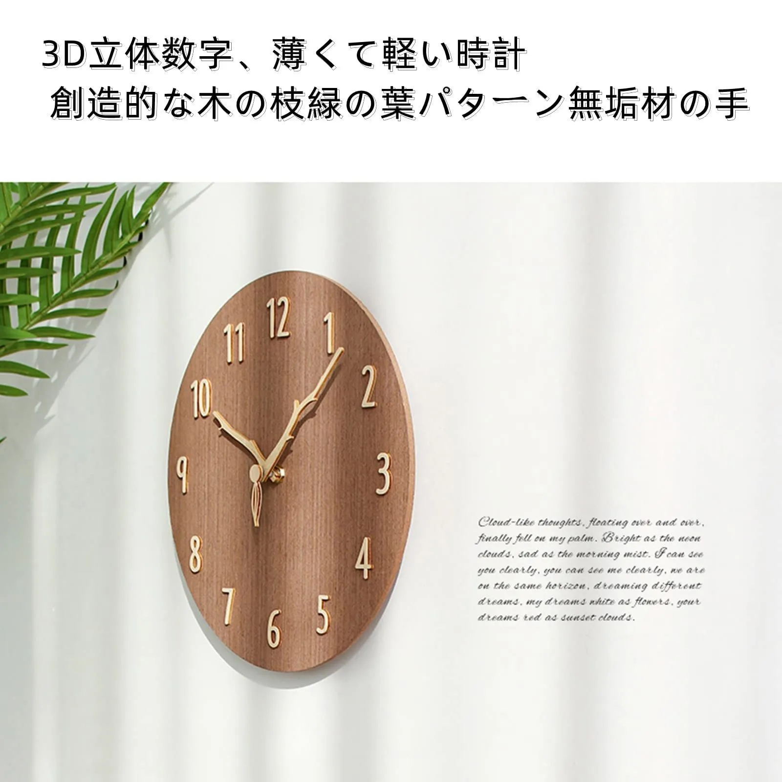【フォロー頂いた方限定!】※不定期 大変お得な クーポン を発券しております! フォロー頂けないと確認できないので お手数ではございますがページ下プロフィールより ボタンひとつ 「ポチッ」 だけおねがい致します|ω・) ------------- 掛け時計 木 おしゃれ 北欧 静音 時計 壁掛け 丸型 フレームレス かわいい 12インチ(直径30cm) 天然 無垢材パネル 3D立体数字 創造的な木の枝緑の葉パターン無垢材の手 連続秒 モダンなホームオフィス 居間 寝室 書斎 室内装飾 お祭り 贈り物 (茶色(円形)) 1.