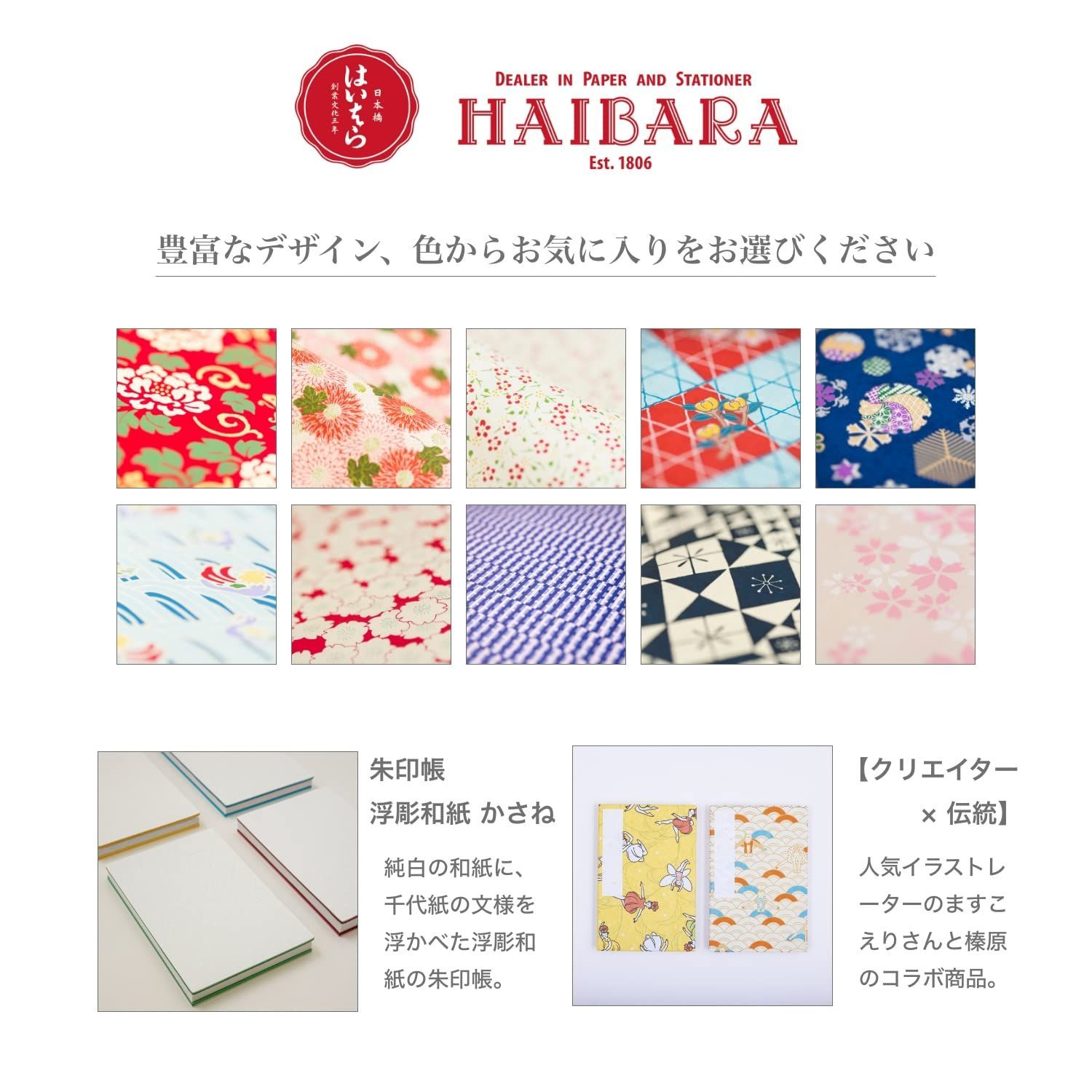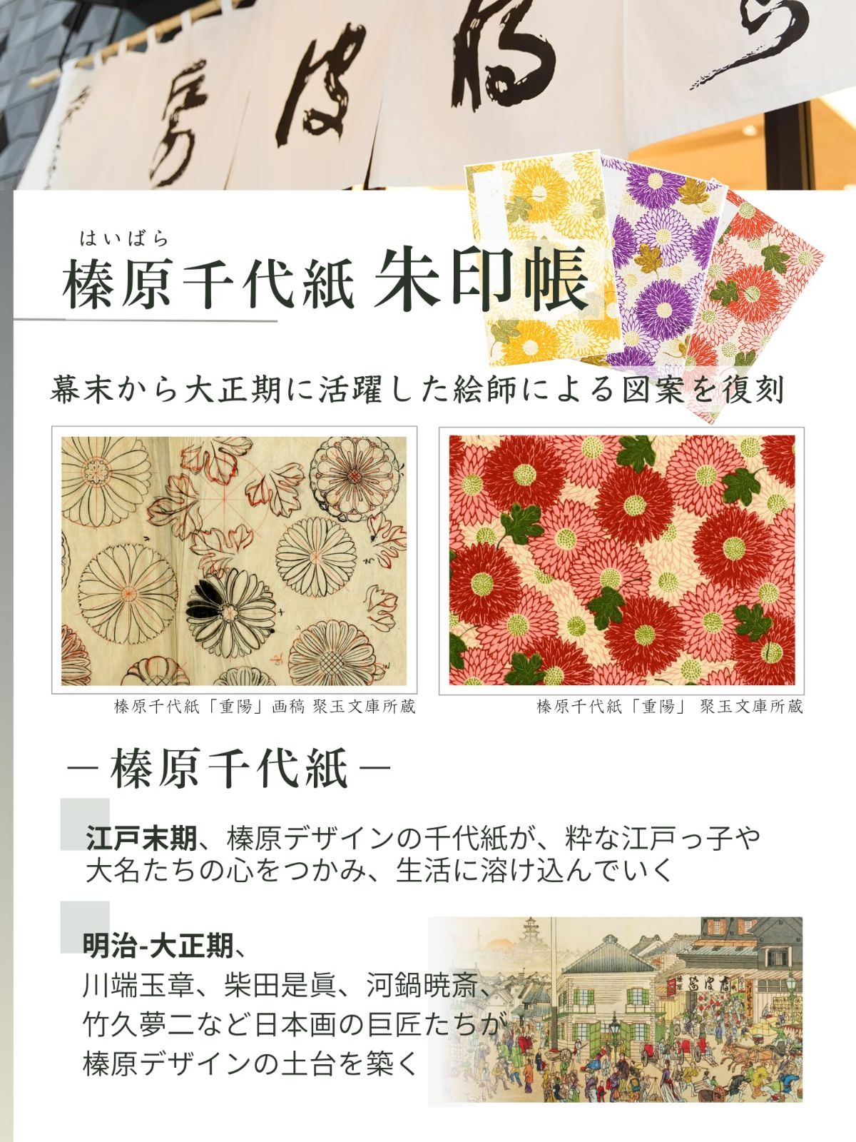 【日本橋で200年続く和紙店】 榛原 の 朱印帳 です。幕末から大正期にかけて創作された オリジナルの千代紙を表紙に、 蛇腹タイプ 大判 サイズ(12×23㎝)の 御朱印帳 。