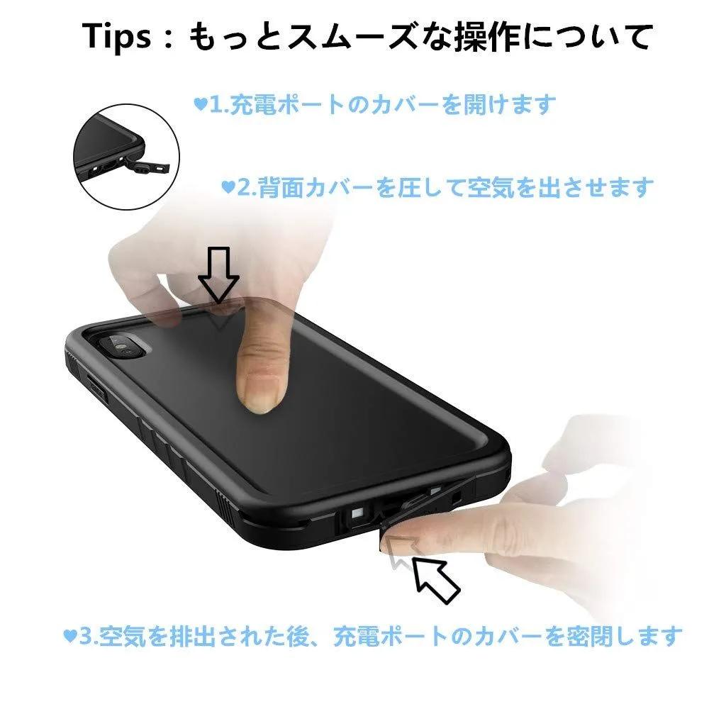 【装着簡単】iPhone xを防水ケースに入れ、位置を調整し、両サイドを少しずつ押すだけで装着完了です。1000回開閉操作しても完全密閉の効果が保持できます。