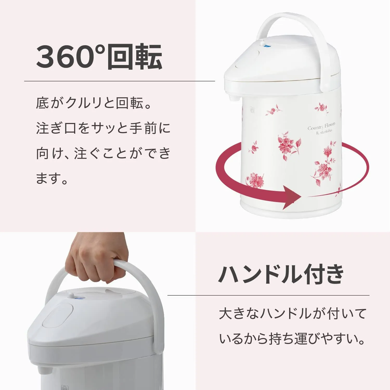【フォロー頂いた方限定!】※不定期 大変お得な クーポン を発券しております! フォロー頂けないと確認できないので お手数ではございますがページ下プロフィールより ボタンひとつ 「ポチッ」 だけおねがい致します|ω・) ------------- ピーコック 日本製 保温ポット 魔法瓶 エアー ポット 2.2L ガラス 保温 アーバン MPP-22 ZA 本体サイズ(約): 幅19.6×奥行24.8×高さ31.2cm、容量: 2.2L 本体重量: 約1.62kg 素材・材質: 内びん/ほうけい酸ガラス、胴部/鋼(印刷鋼鈑)、ふた/ポリプロピレン、口がね/ポリプロピレン、揚水パイプ/ポリプロピレン 生産国: 日本製 保温効力: 76℃以上(10時間)、保冷効力: 7℃以下(10時間) 魔法瓶でしっかり保温保冷。内瓶はガラス製だからにおい移りがしにくい。中せんなし構造だから、ふたを開ければそのまま給湯できます。底は360度回転するので、手元で注ぎやすい。上ぶたは着脱式でお手入れがしやすい。電気を使用しないのでとっても省エネです。コンセント不要でご家庭、会社、オフィス、レストラン、飲食店、ホテル、民宿、公共施設、集会所など様々な場所とシーンで活躍します。 -------------